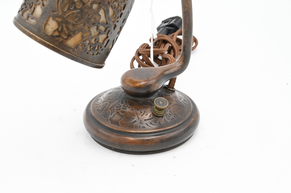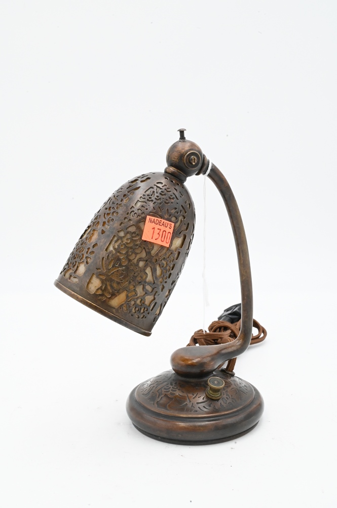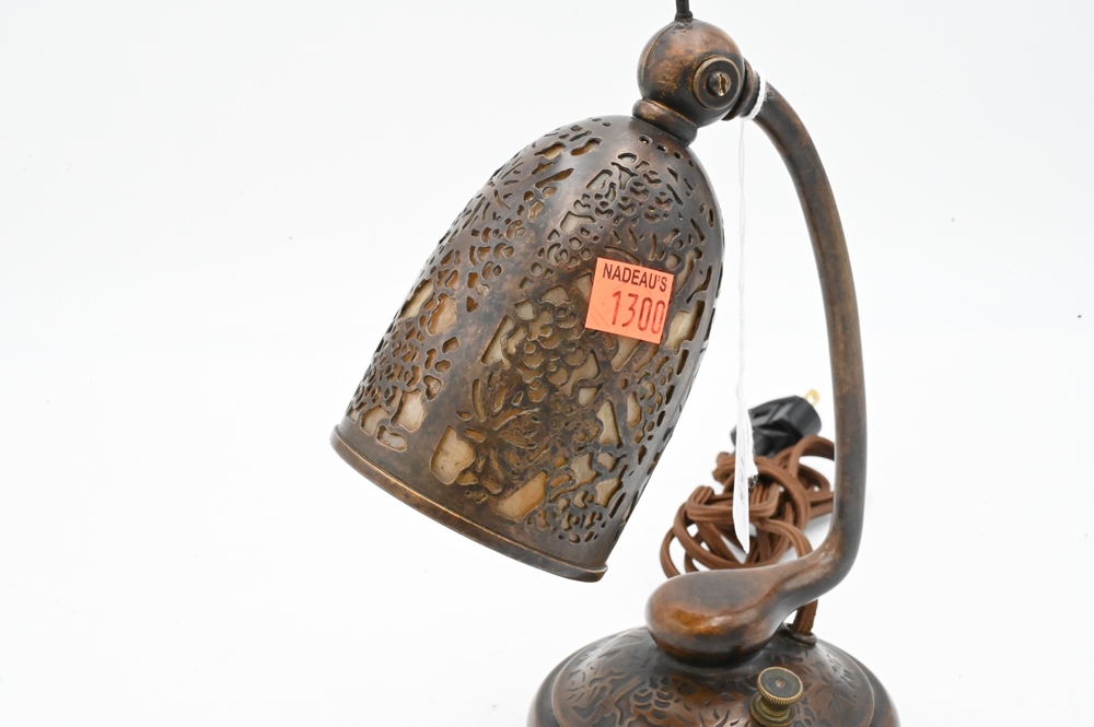 Tiffany Studios Grapevine Desk Lamp, bronze with slag glass adjustable shade, marked Tiffany Studios New York 552, height 9 inches.