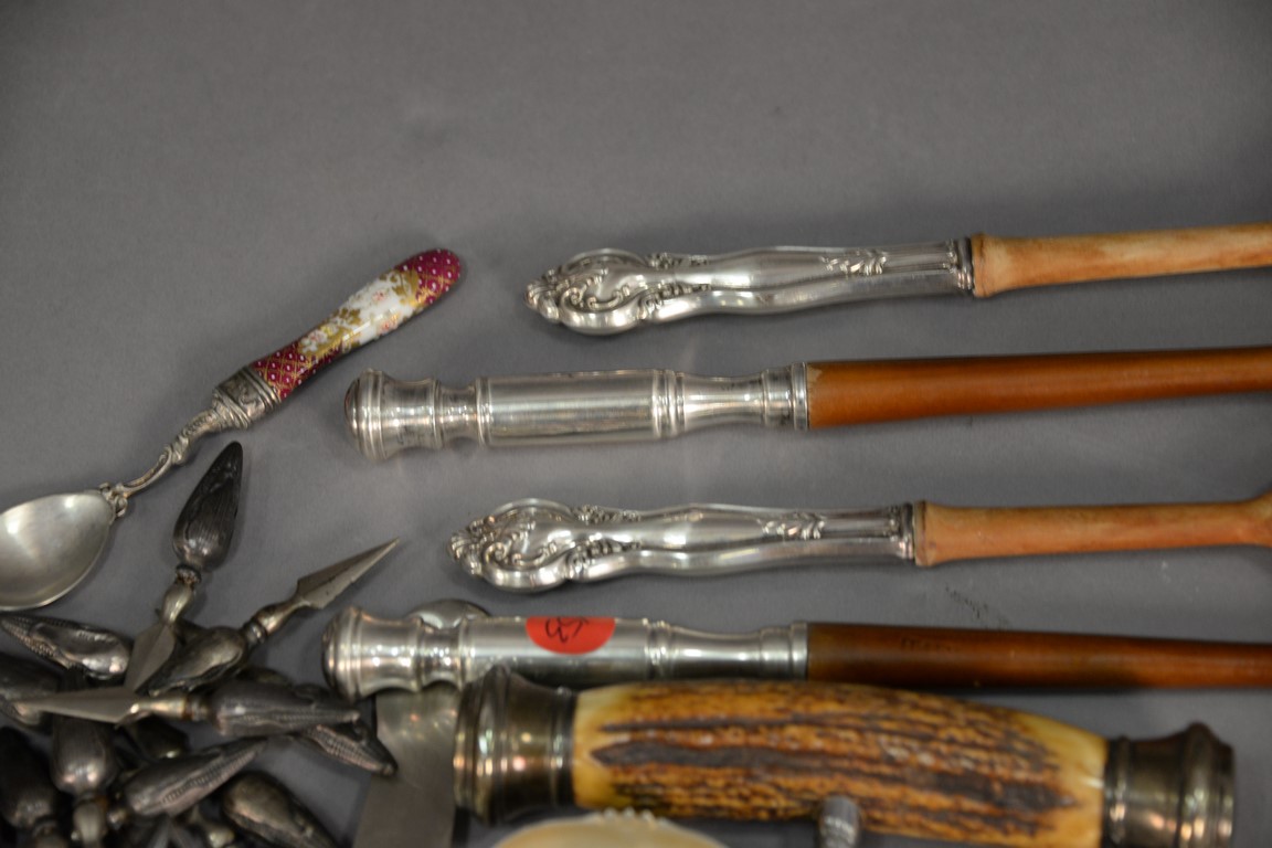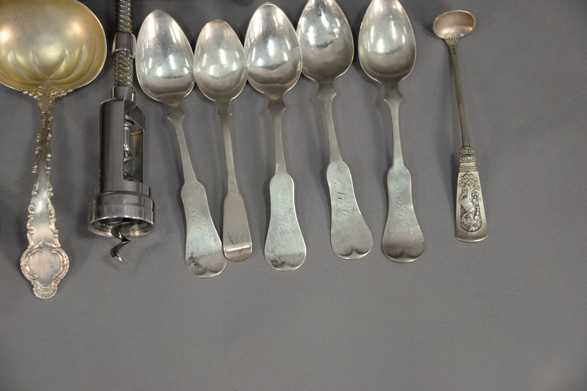 Lot 155: Tray lot with silver and sterling including salad serving spoons and forks, ladle, etc. 6.4 weighable t oz.