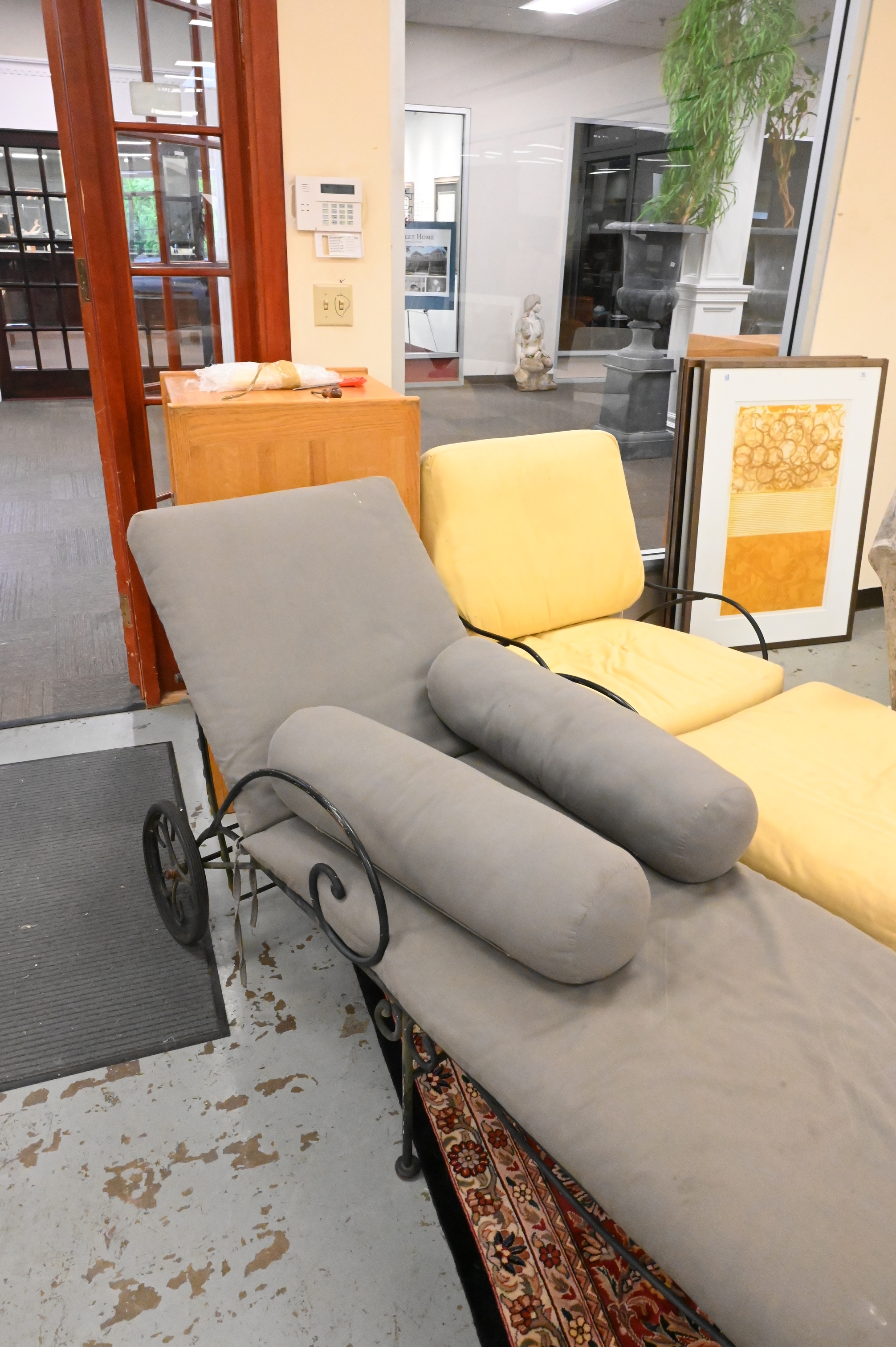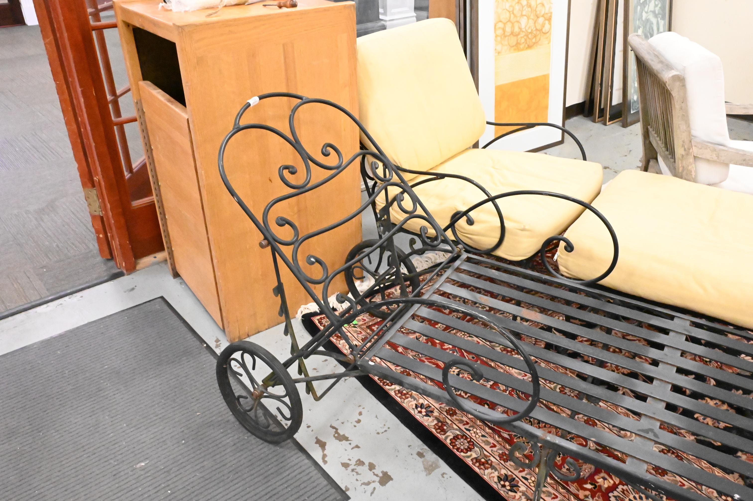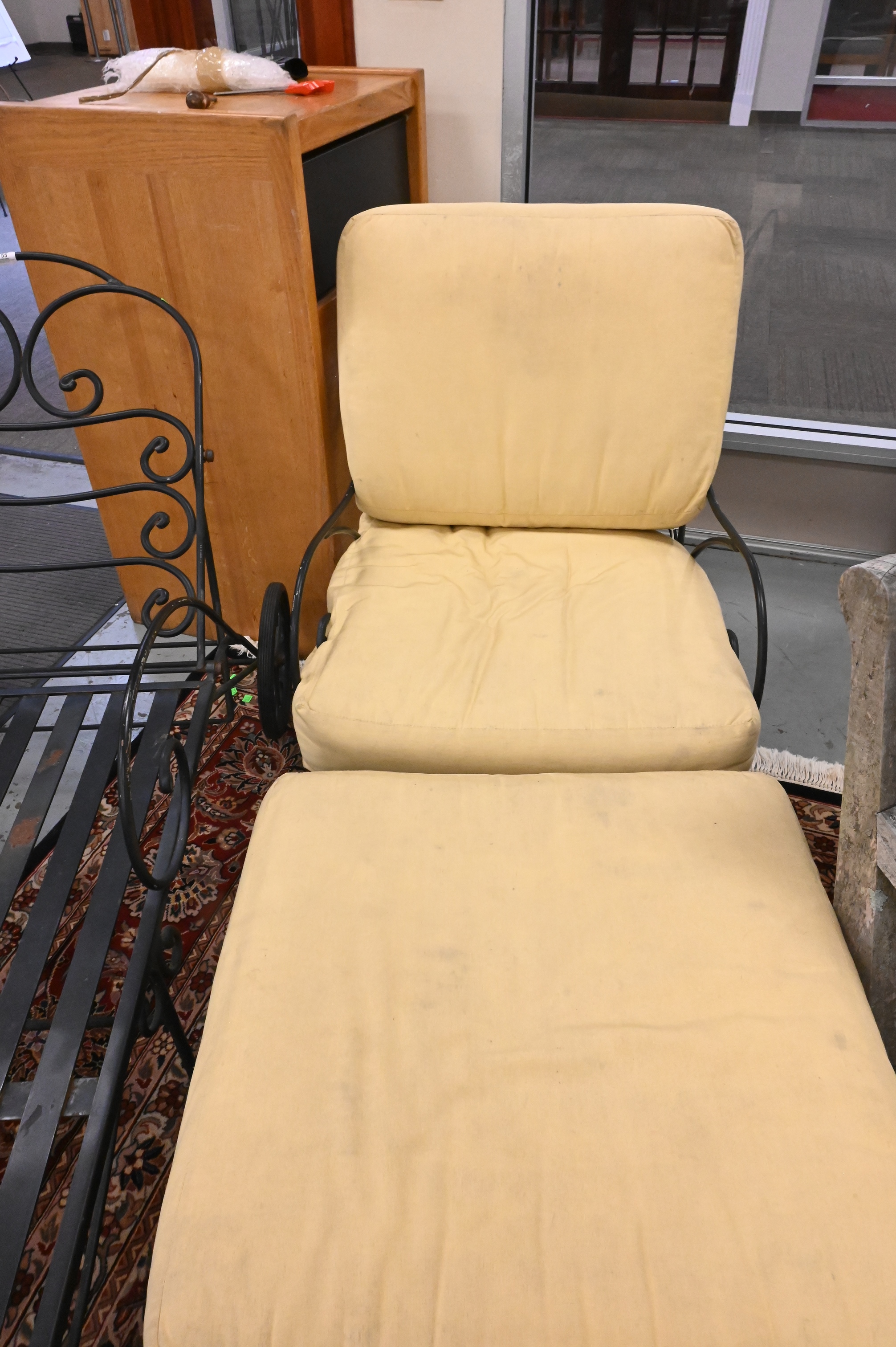 Two Piece Iron Outdoor Lot, to include a chaise lounge, along with an armchair and ottoman, chaise length 72 inches.