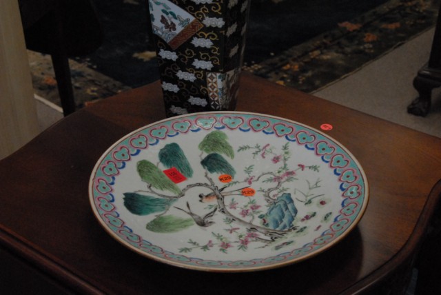 Two piece Oriental porcelain charger and Oriental porcelain vase.
