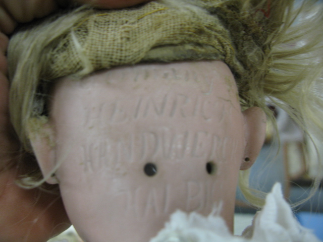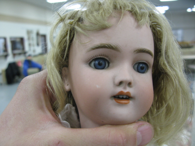 15 Handwerck/Halbig German Bisque Head on BJCB, open mouth, sleep eyes, scrub mark on left cheek.