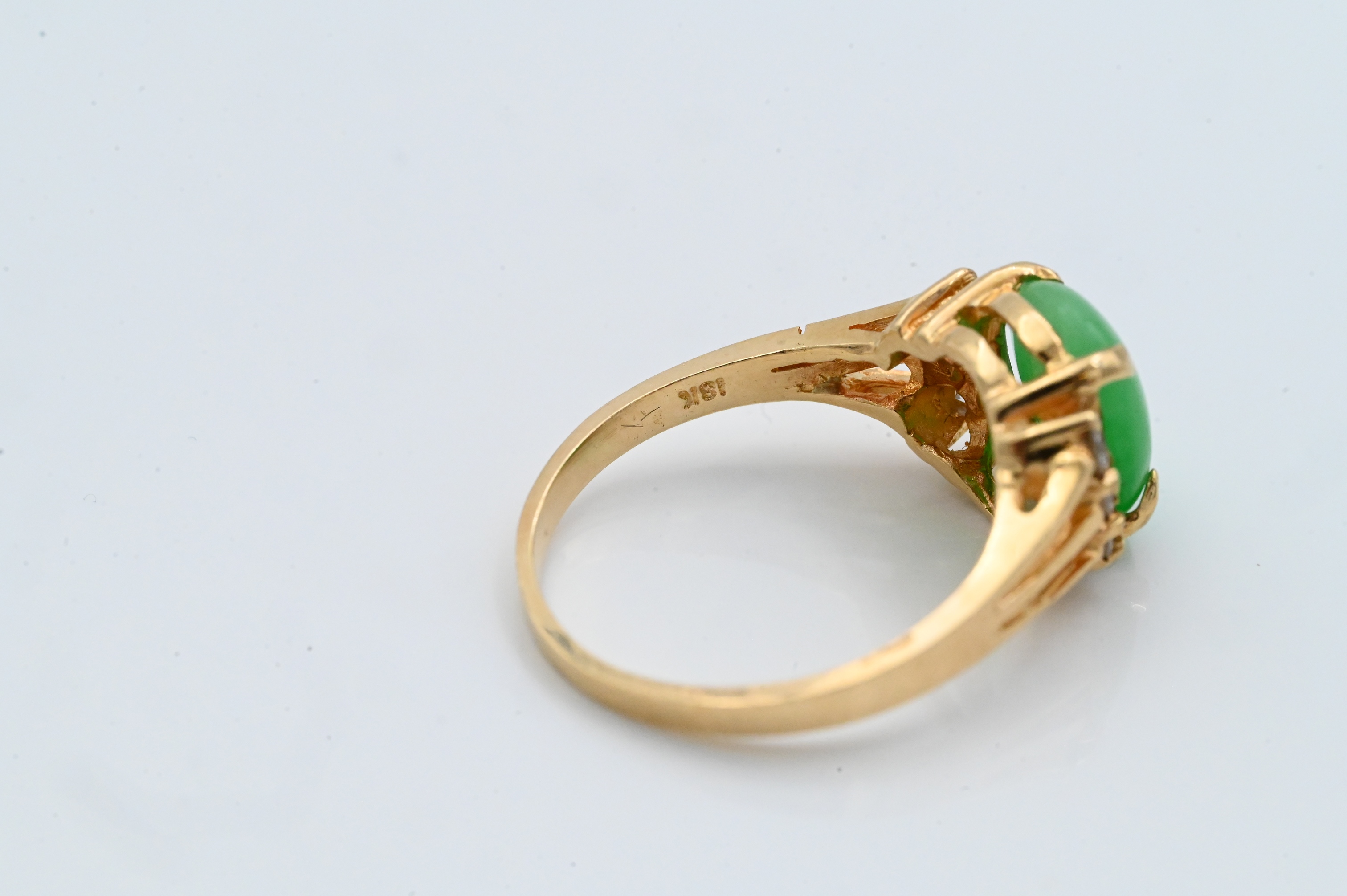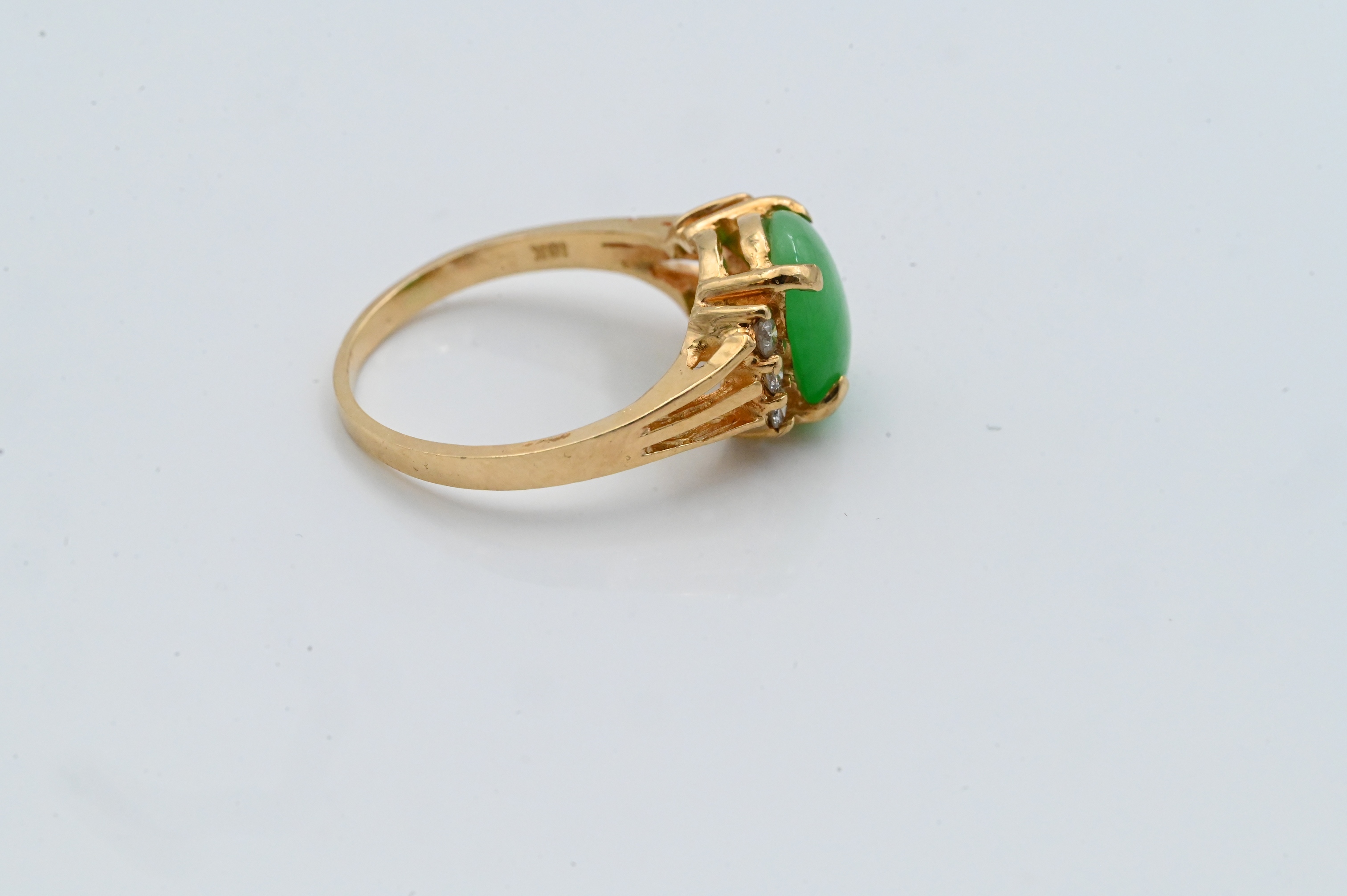 Lot 156: 18K Yellow Gold Jade and Diamond Ring
