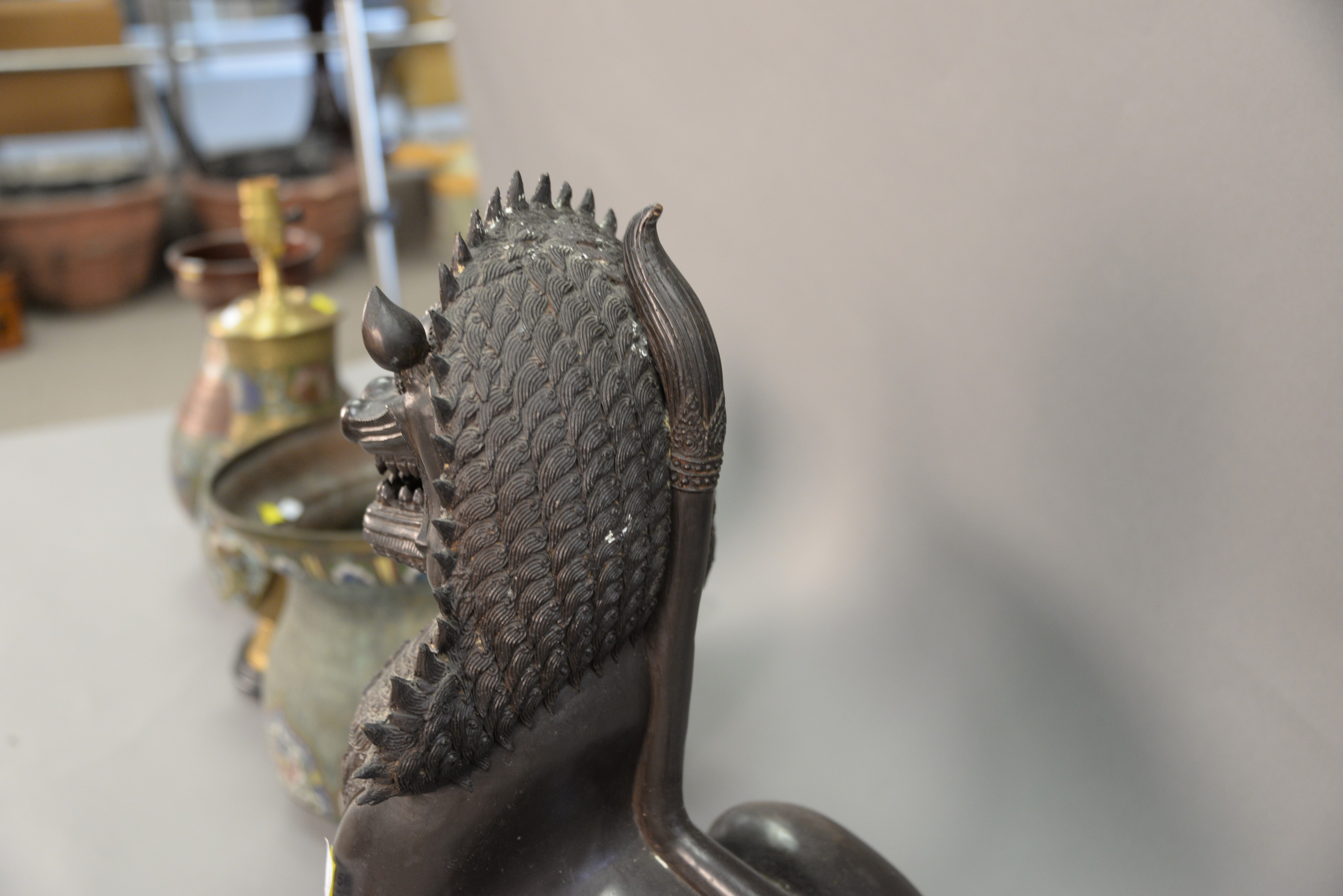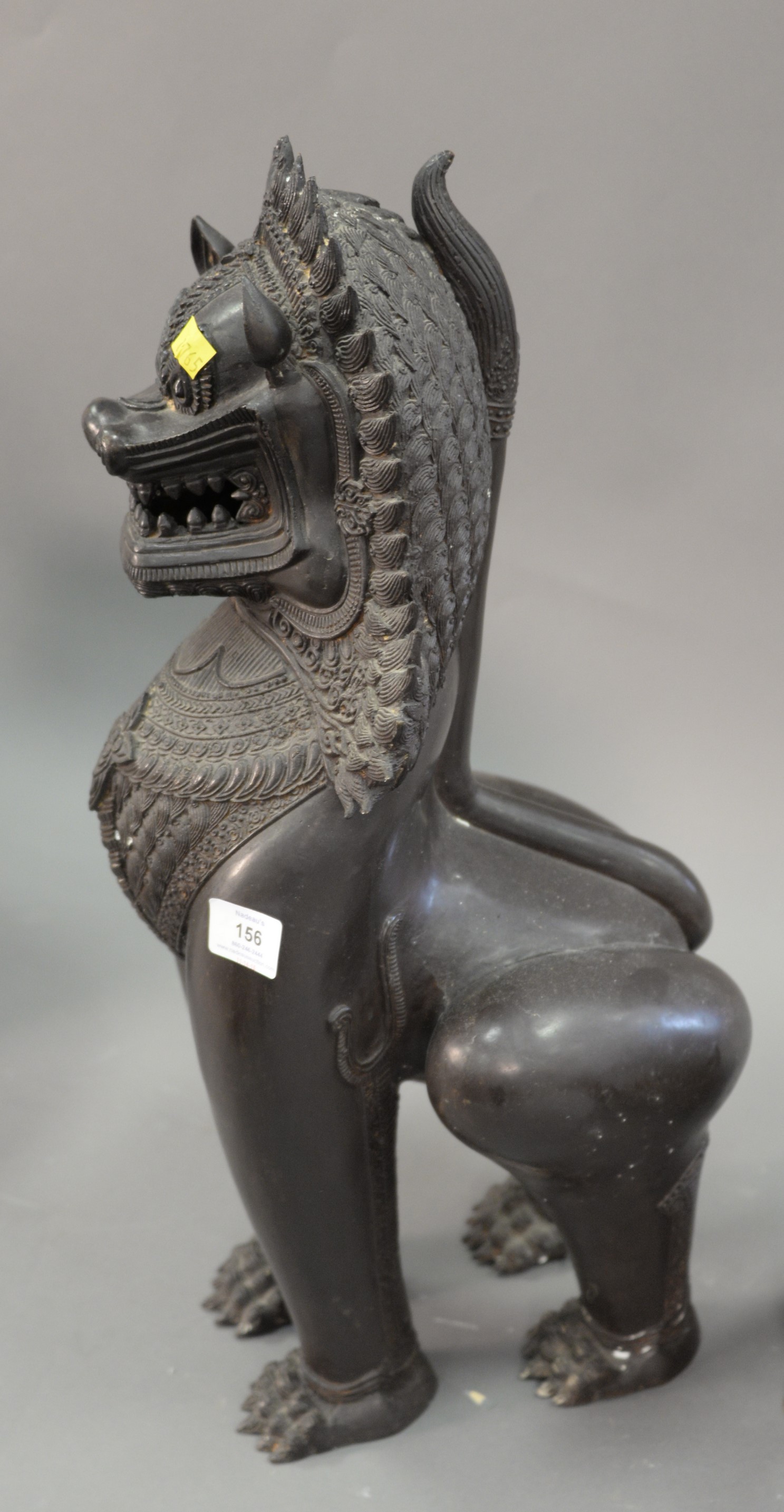 Bronze Far-Eastern sculpture of a foo dog, late 20th century. ht. 24 in.