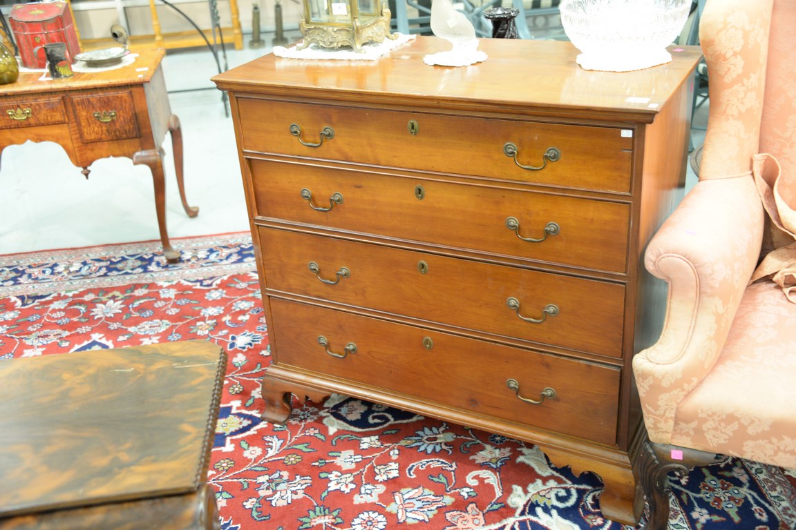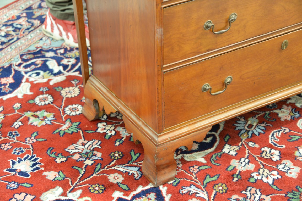 Lot 156: Chippendale cherry four drawer chest on ogee feet, probably New London County, CT, circa 1760. ht. 38 in. wd. 39 1/2 in.