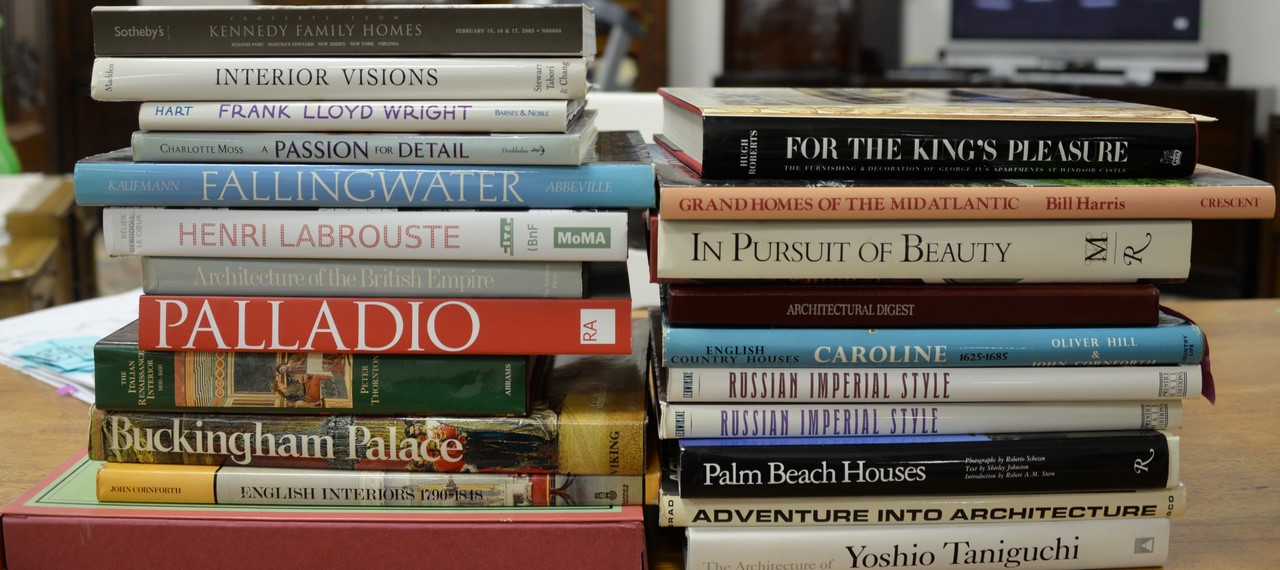 Lot 156: Lot of twenty-three coffee table architectural themed books to include Horn’s Grand Homes of the Mid-Atlantic, Hart’s Frank Lloyd…