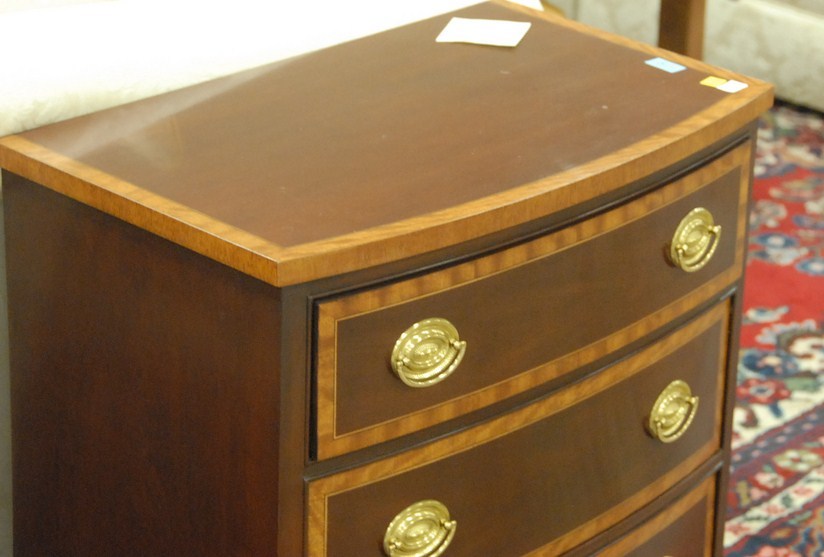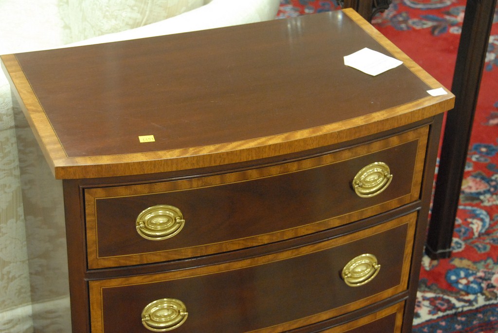 Lot 156: Pair of Councill three drawer stands with banded inlay, wd. 24in. ht. 27in.