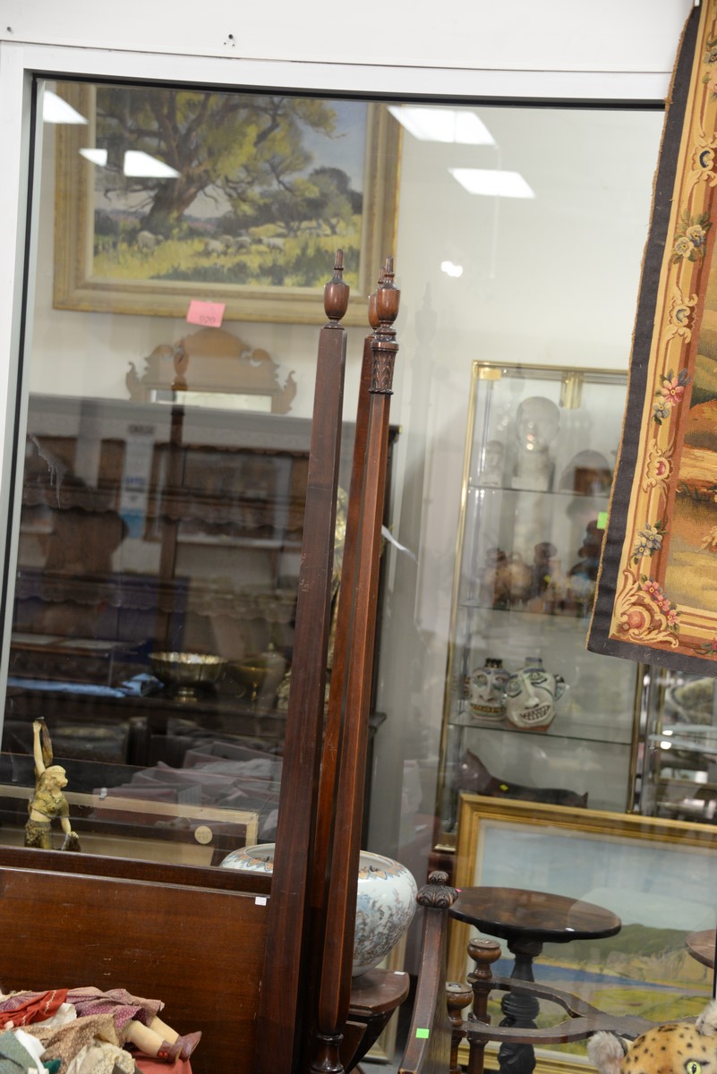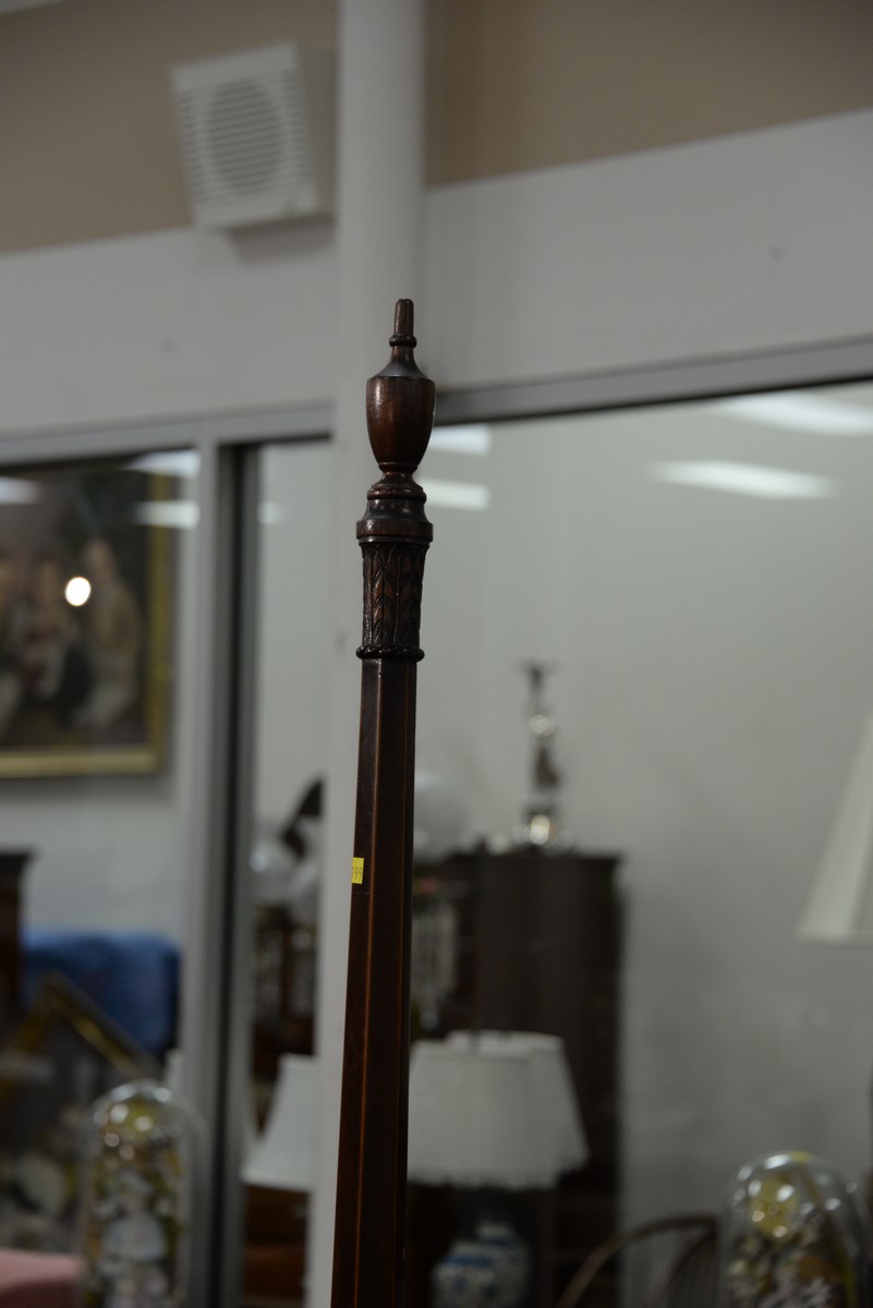 Pair of mahogany twin four post bed with line inlay. ht. 82 in.
