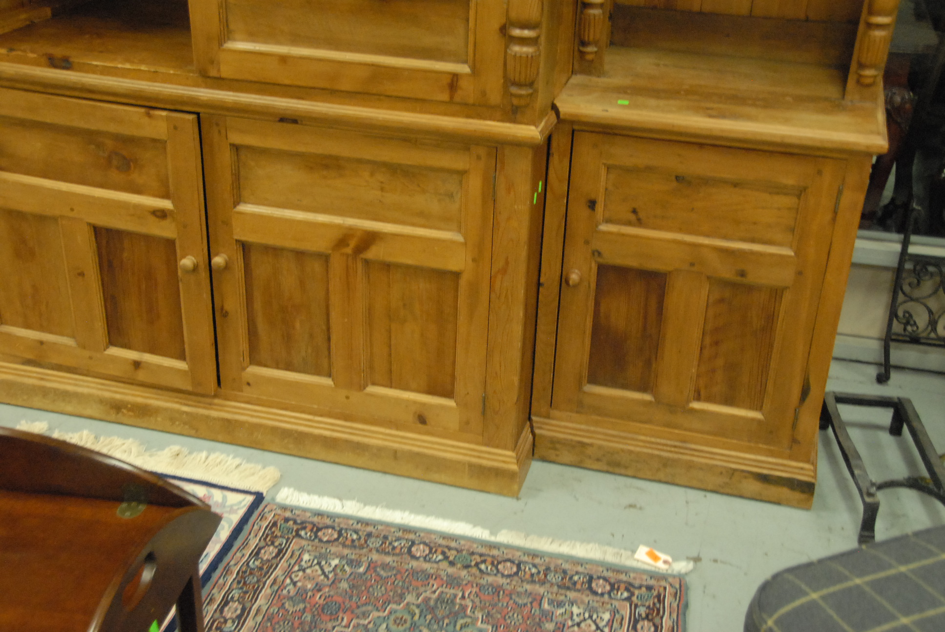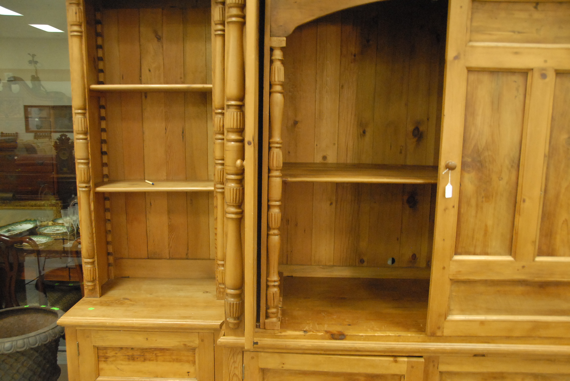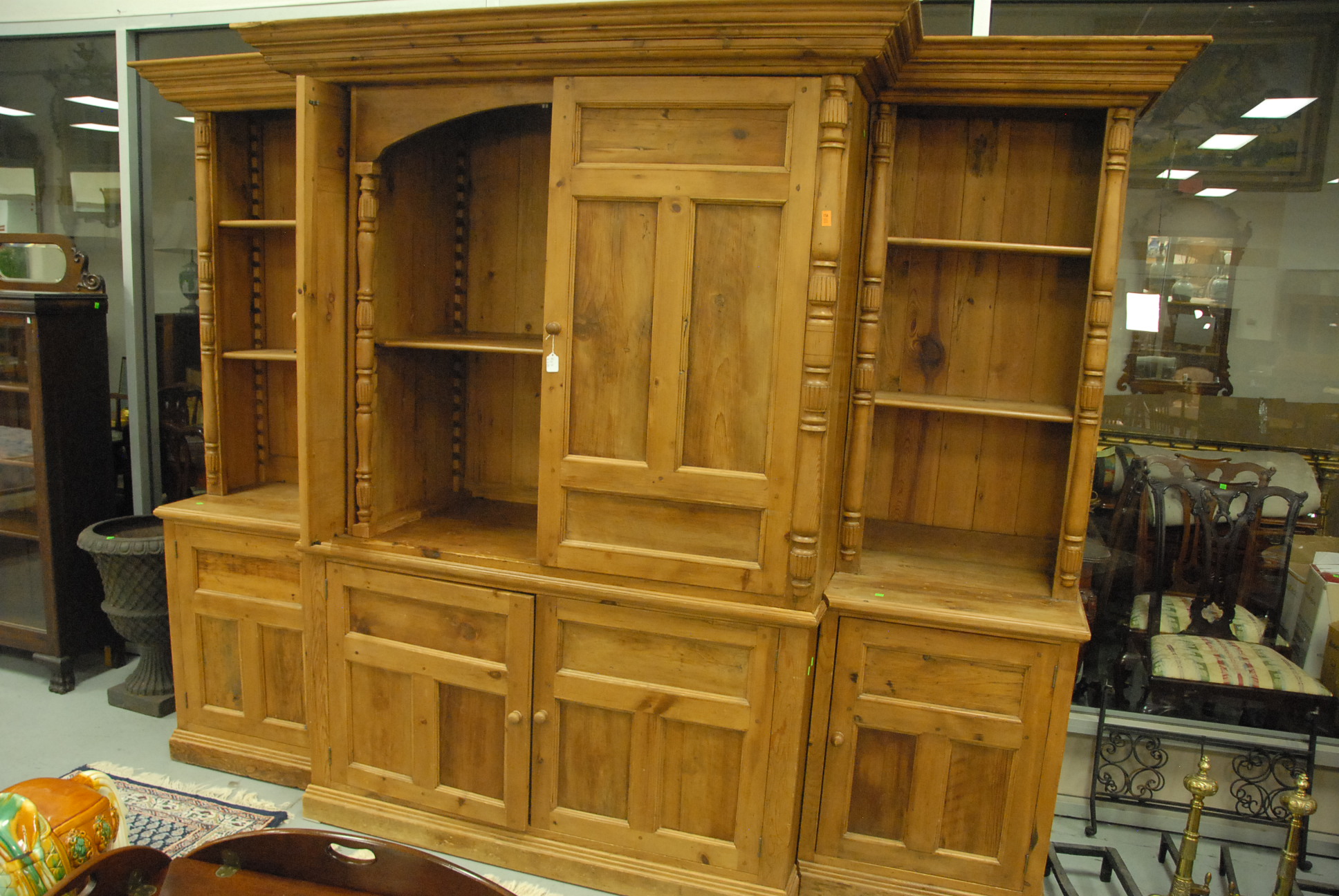 Lot 156: Pine three part cabinet, ht. 84in. wd. 99in.