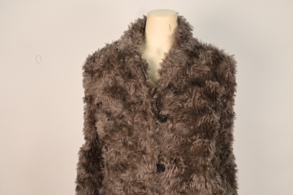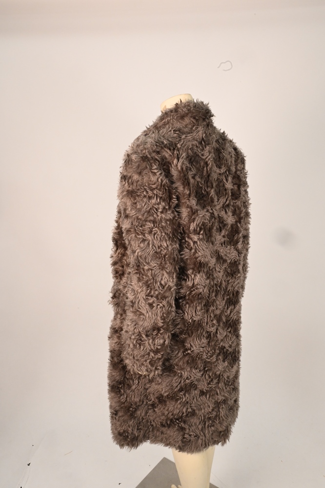 Lot 156: Prada Grey Mohair Blend Coat, “Teddy”, having stand up collar, below the knee length and front flap pockets, normal use wear, size 4…