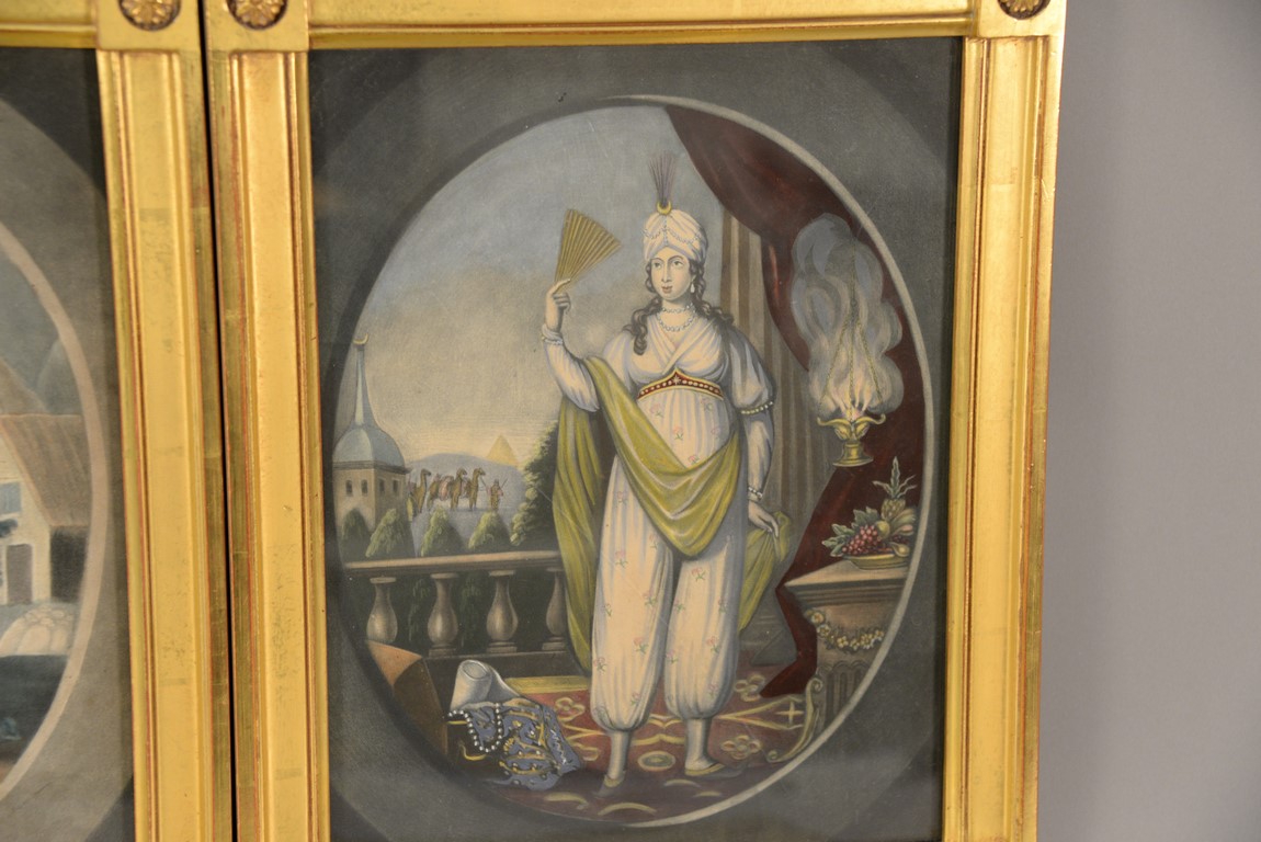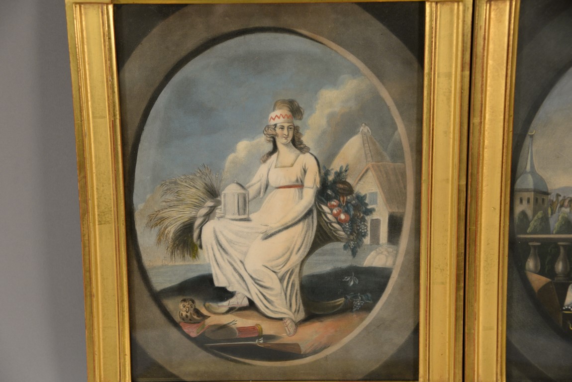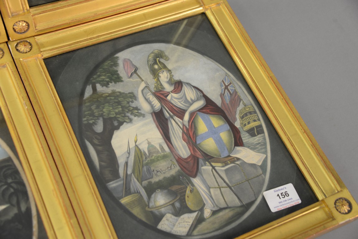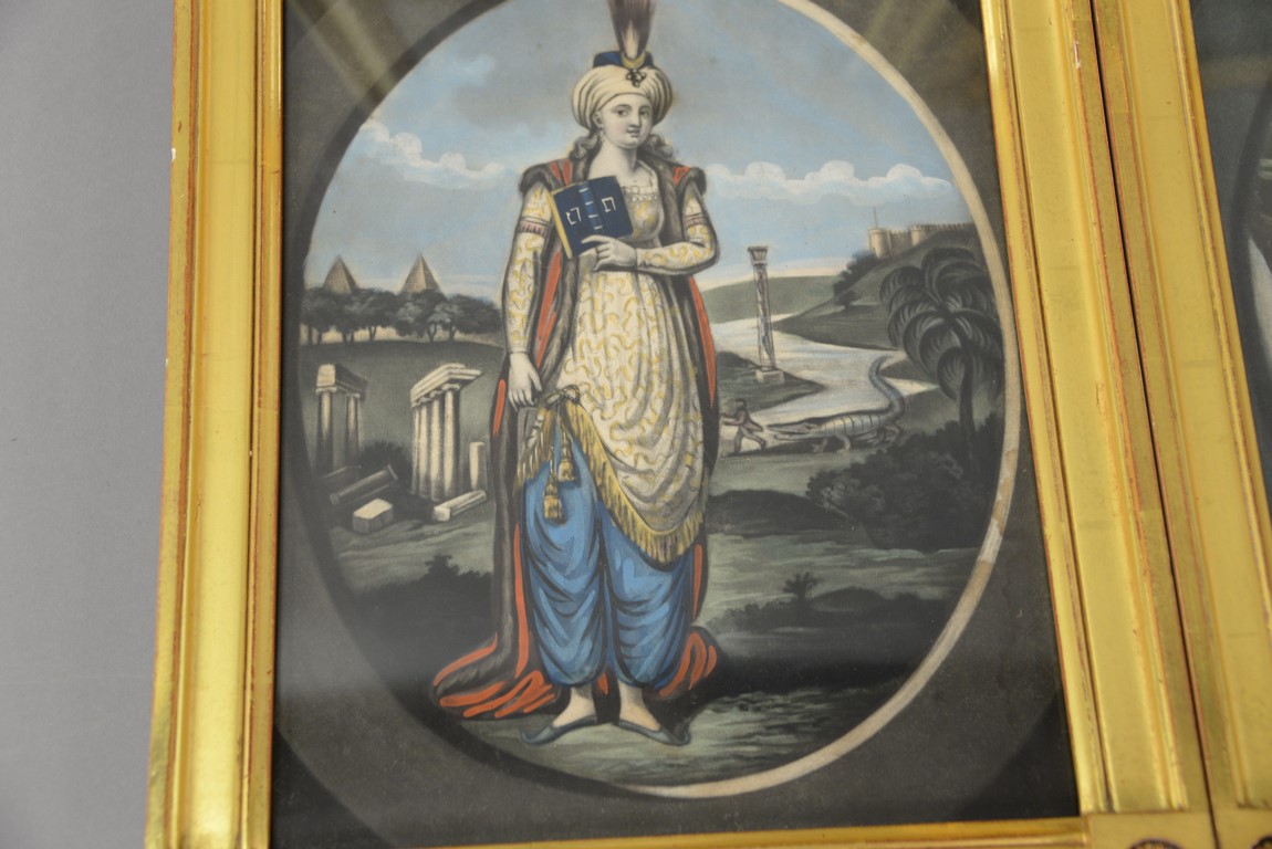 Lot 156: Set of Four Allegorical Emblems, late 18th / early 19th century hand colored mezzotints Personifying Africa, America, Asia, and…