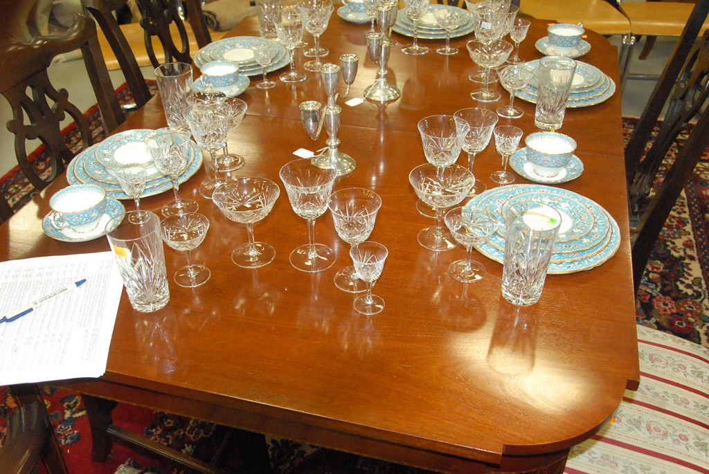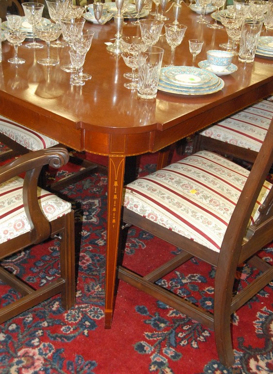 Lot 156: Signed Margolis custom mahogany dining table with D shaped ends with three leaves two with skirts, ht. 30, top: 42 x 62.