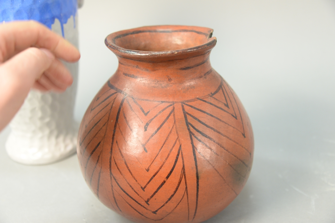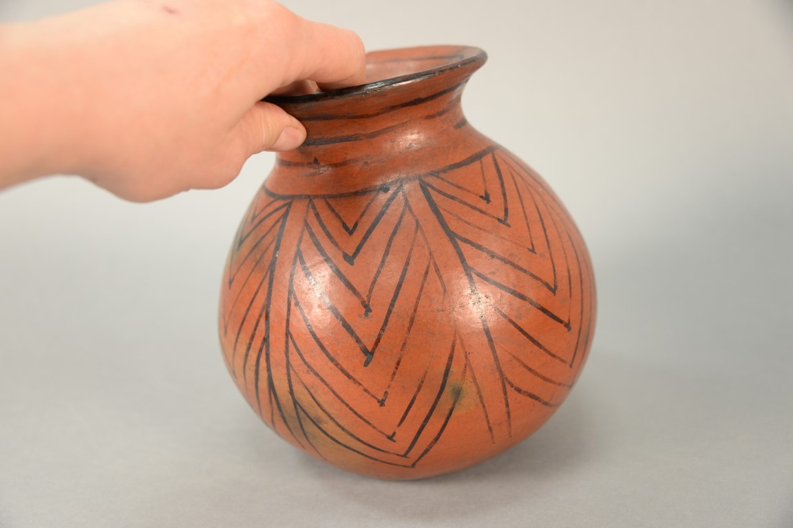 Southwest U.S. Indian pottery pot, red with black geometric designs.