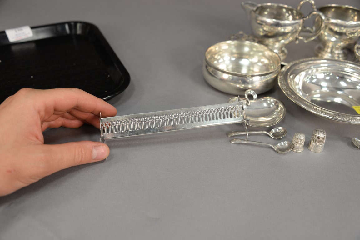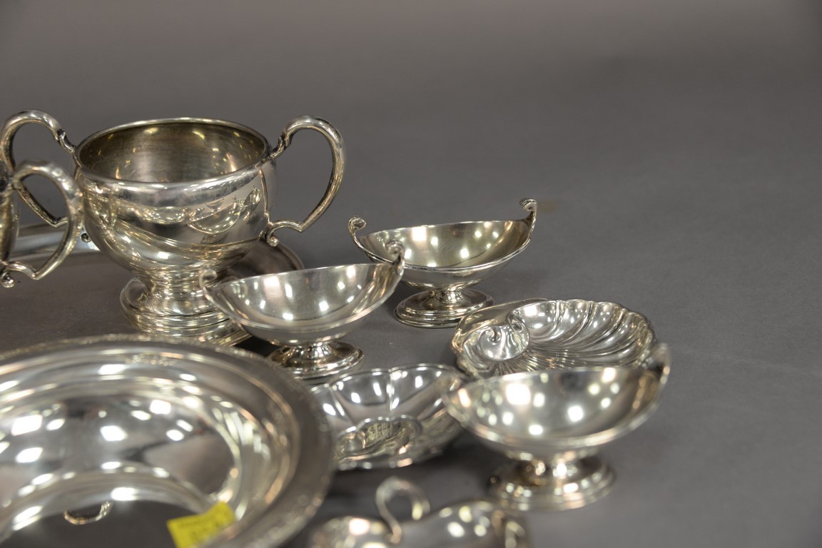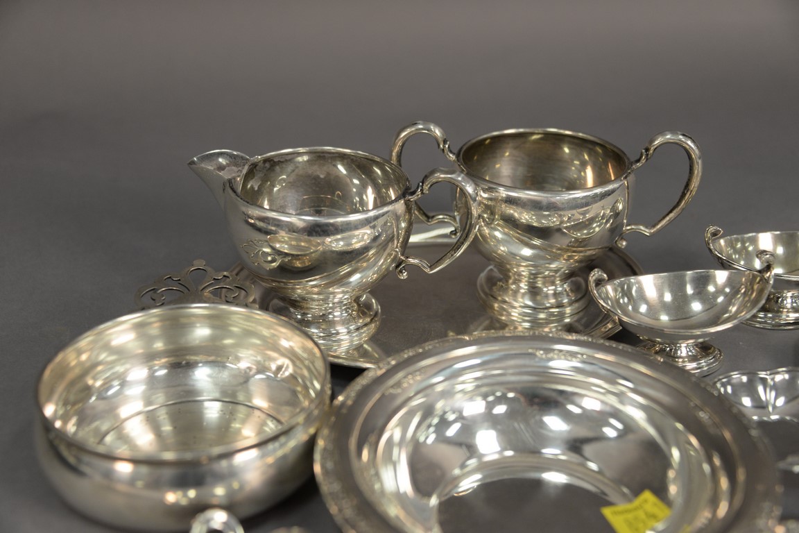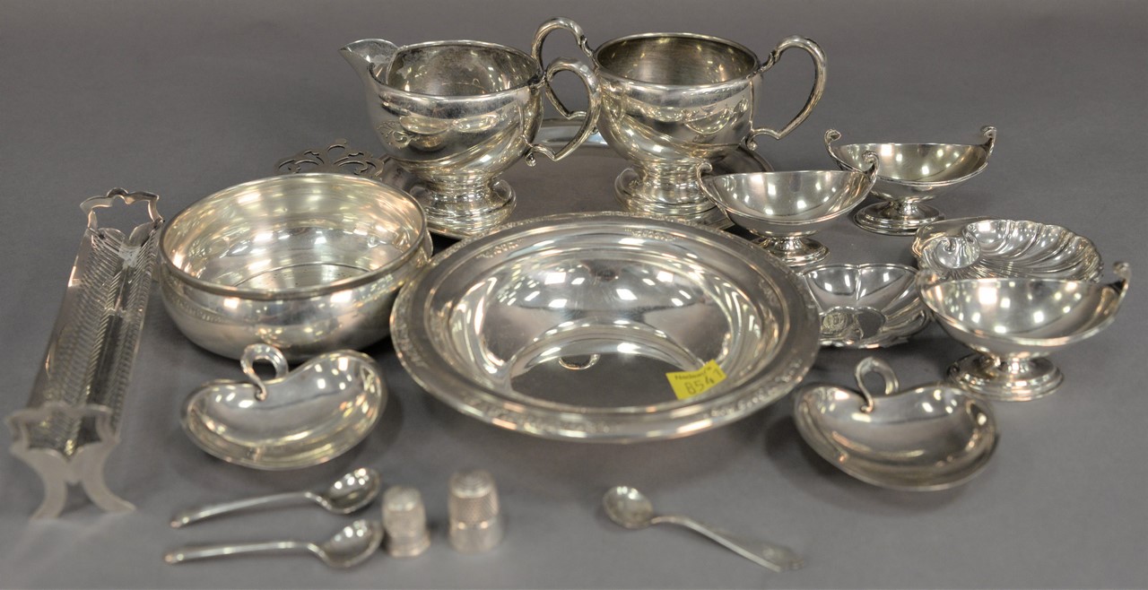 Lot 156: Sterling silver group to include bowls, salts, small tray, sugar and creamer, horderve forks, salt spoon, etc. approximately 24.6 t oz.