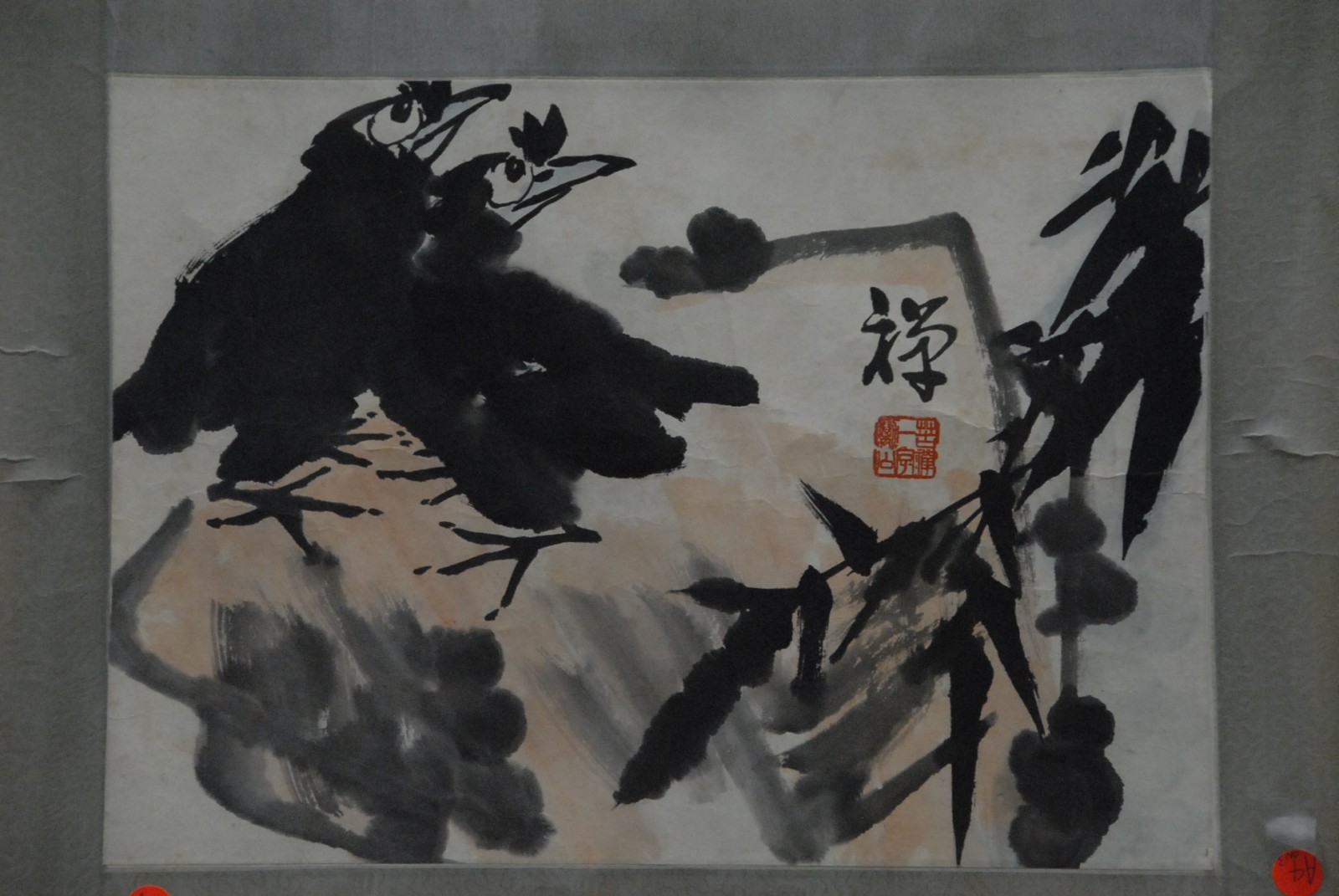 Three small paintings by artist Li Ku Chan.