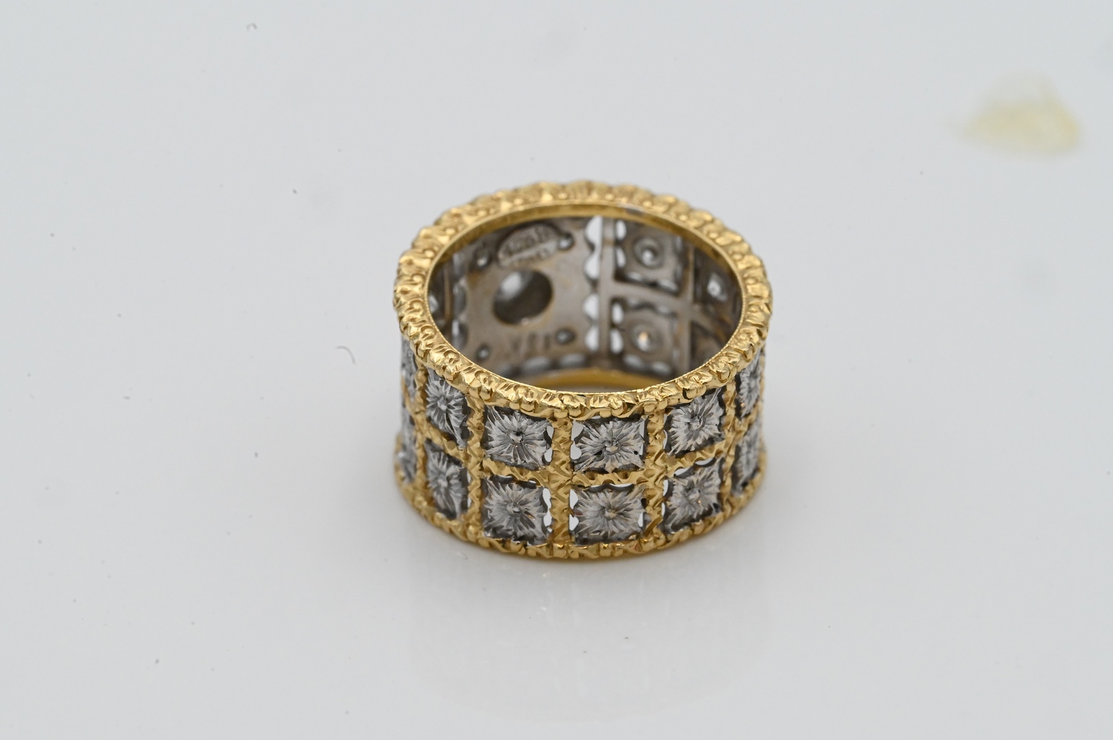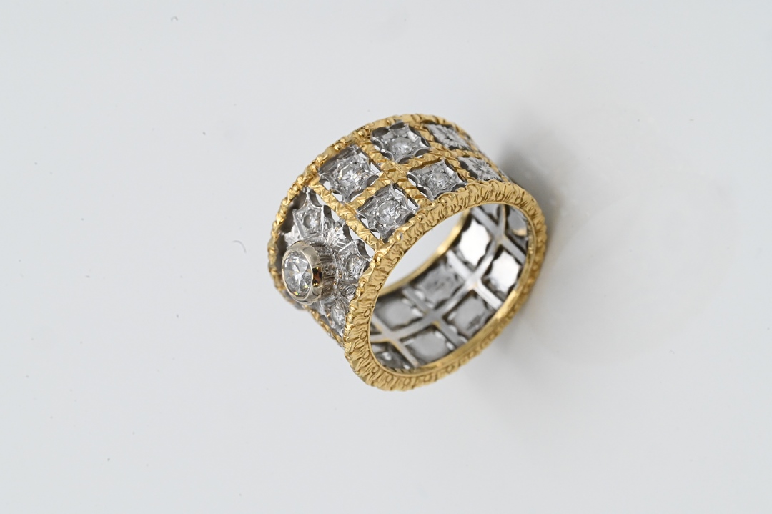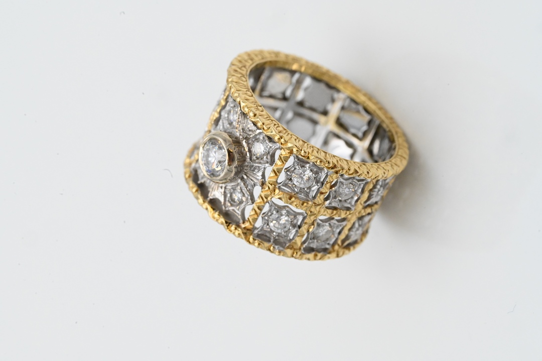 18 Karat Yellow Gold Band having center diamond, along with two lines of diamonds size 6 3/4, 8.9 grams Condition: good condition