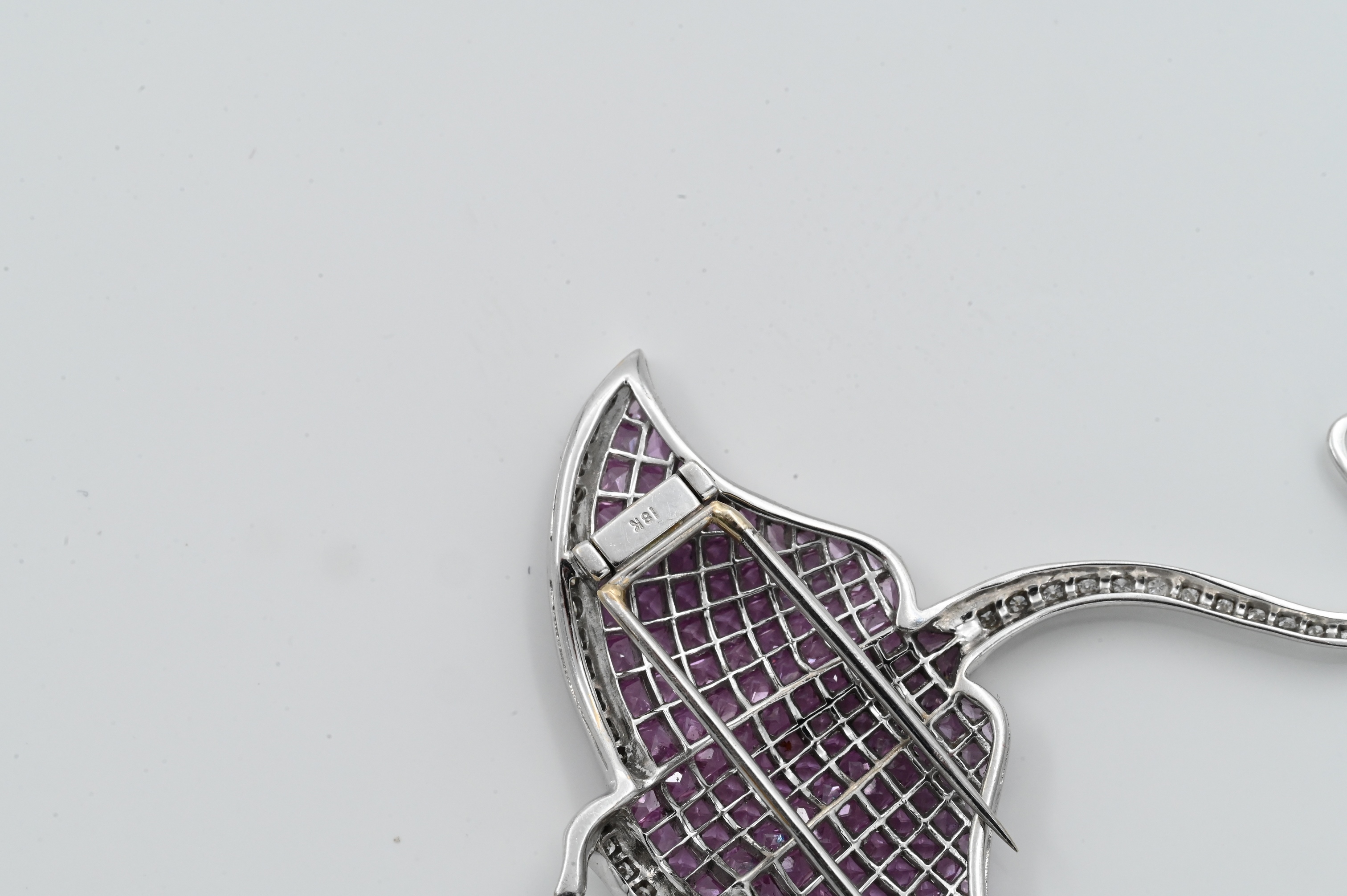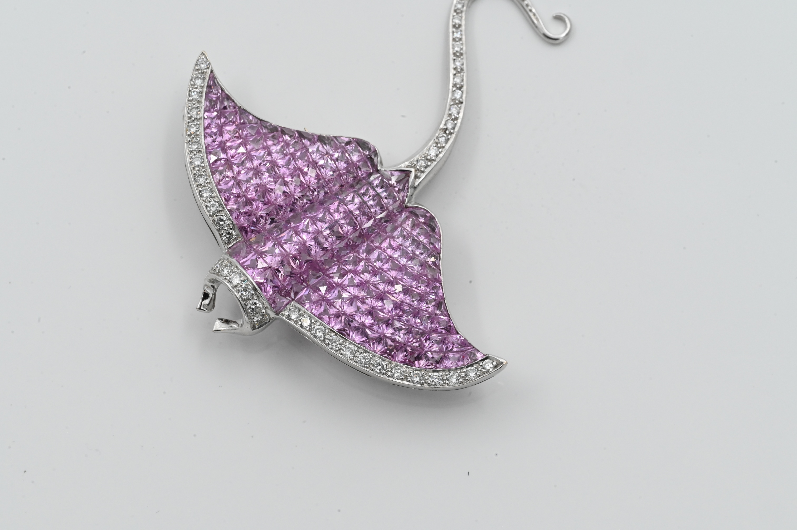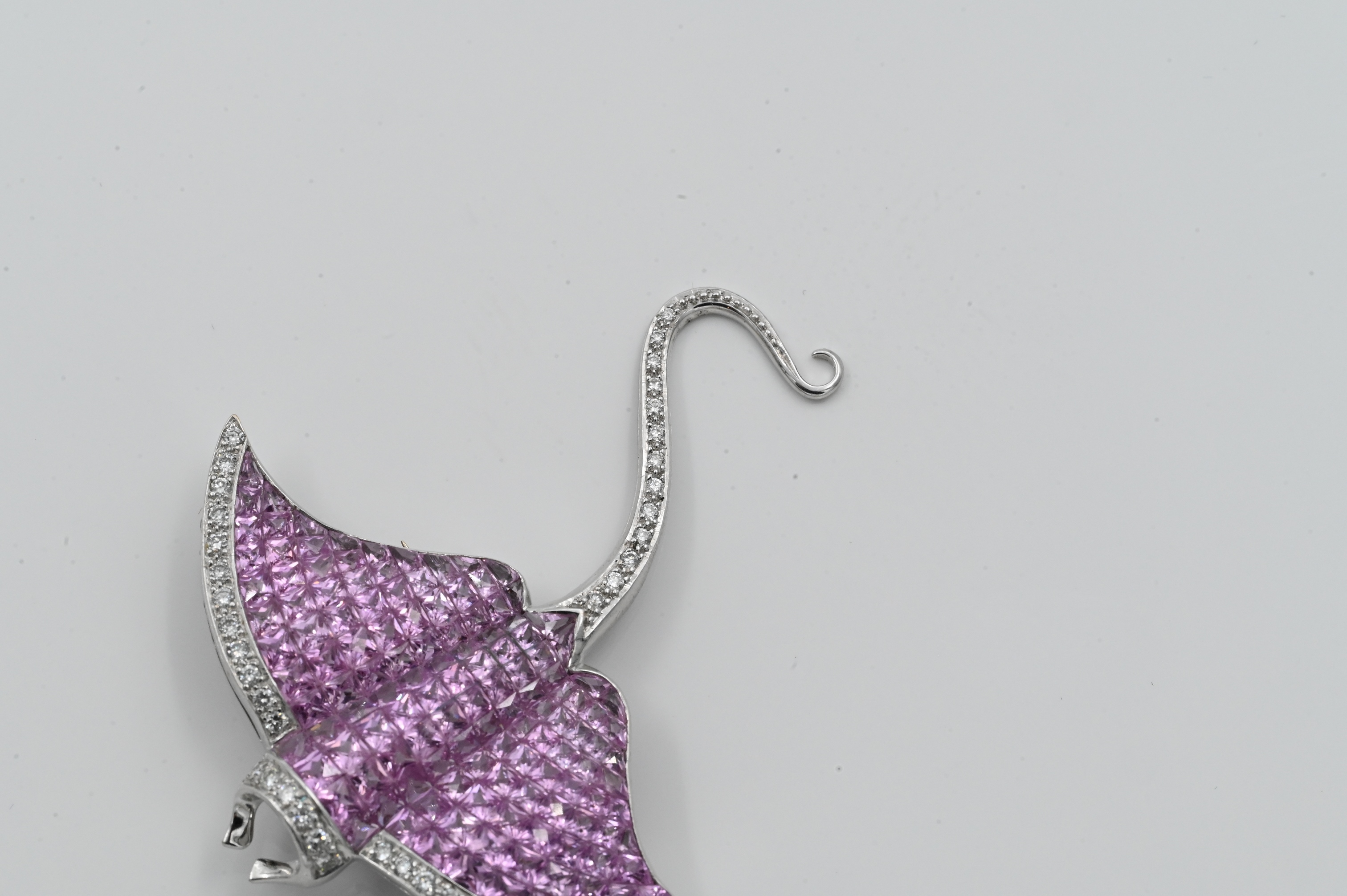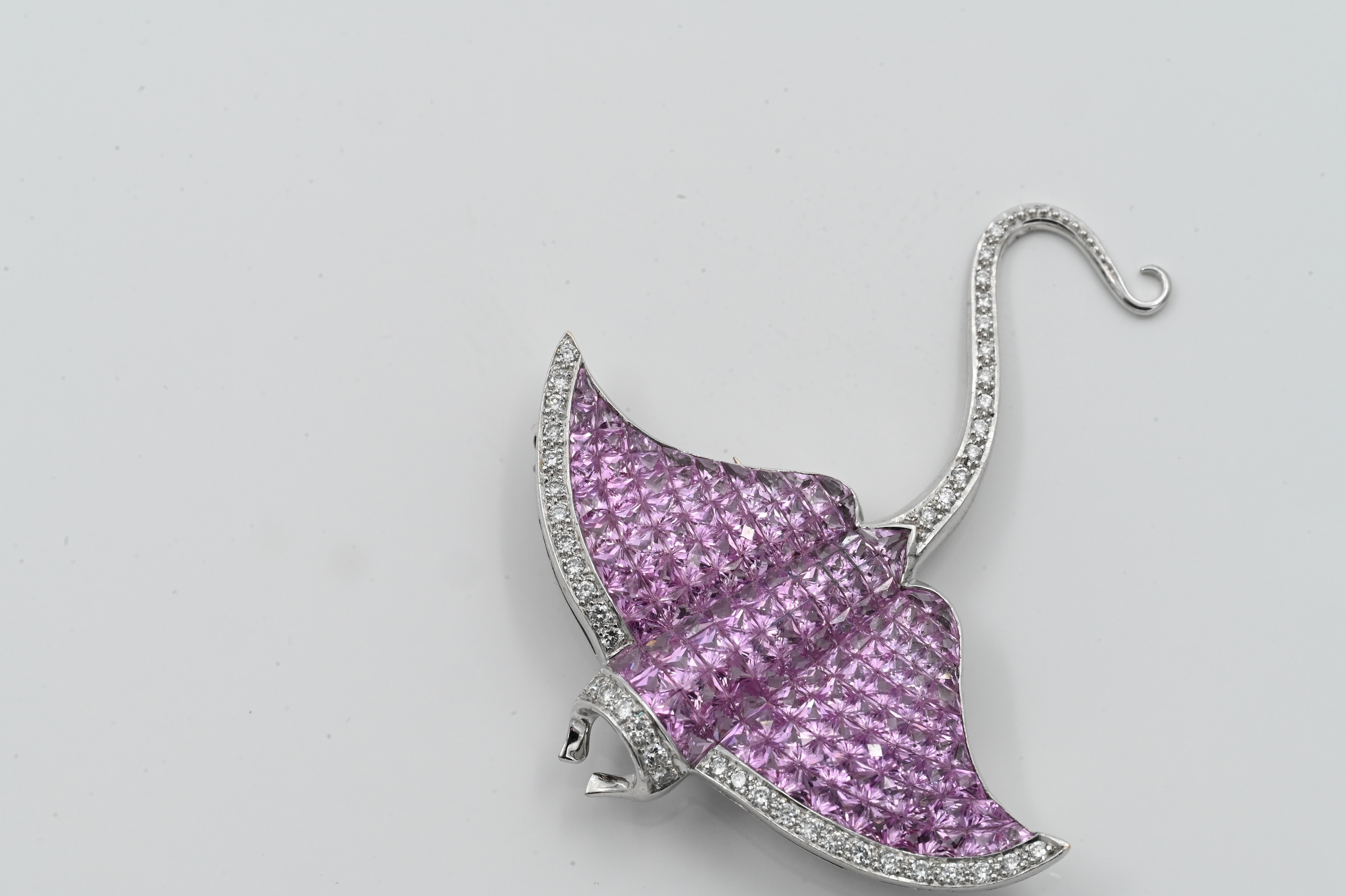18K White Gold, Diamond, and Pink Sapphire Stingray Brooch