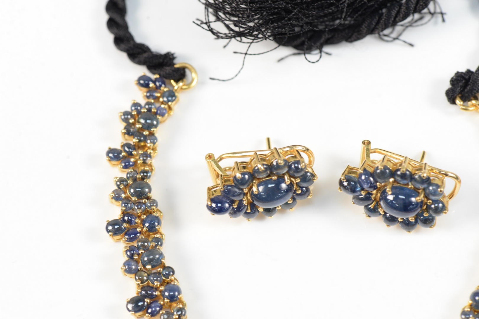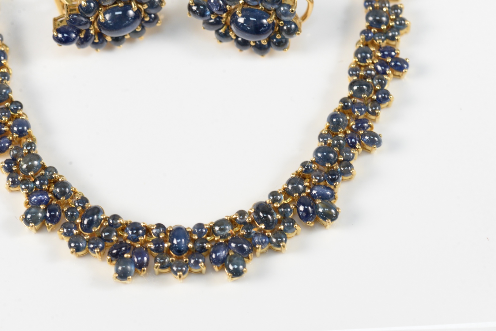 Lot 157: 22 Karat Gold Necklace and Earring Set with cabochon cut blue sapphires total weight 57 grams without the rope necklace