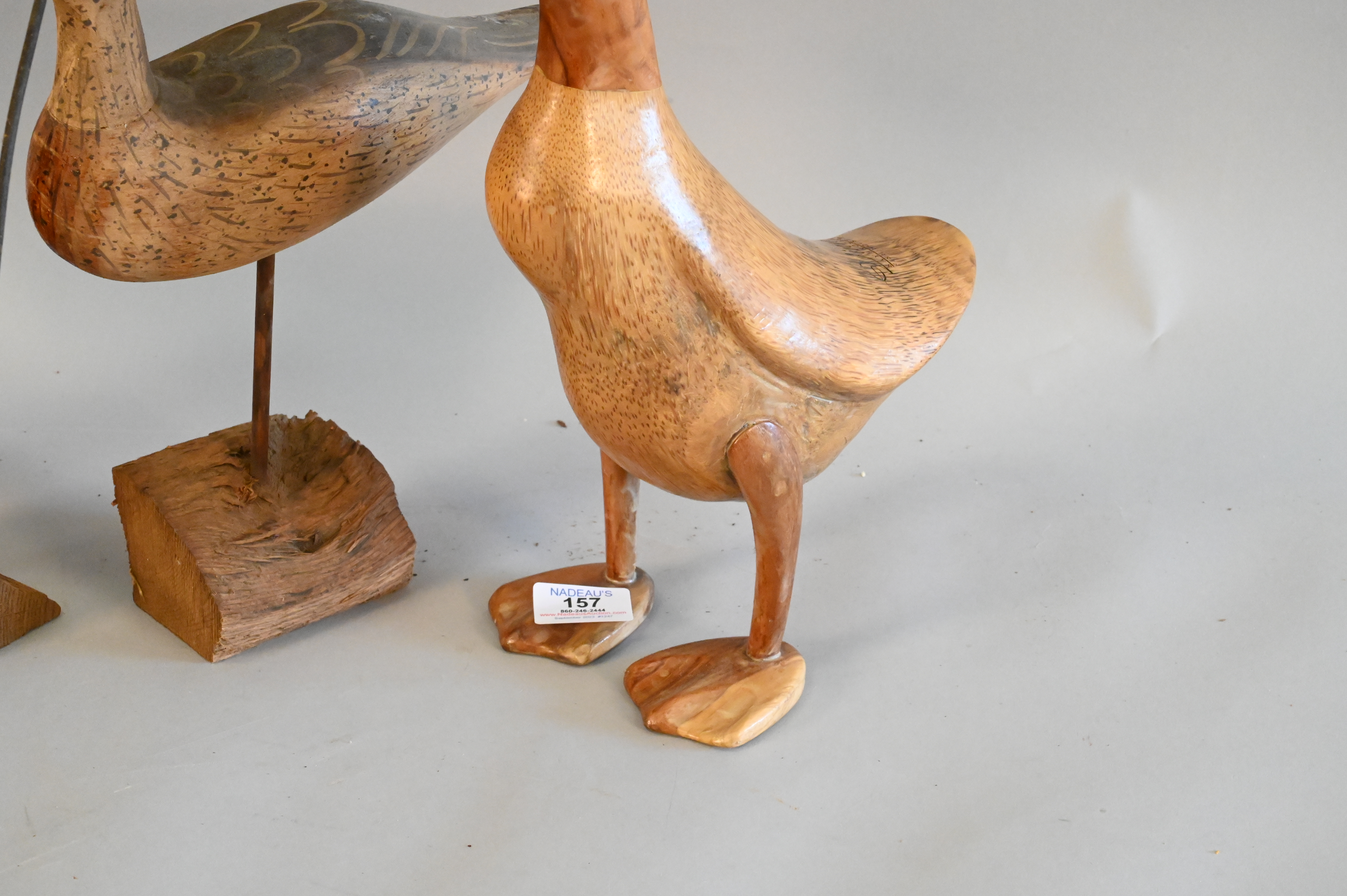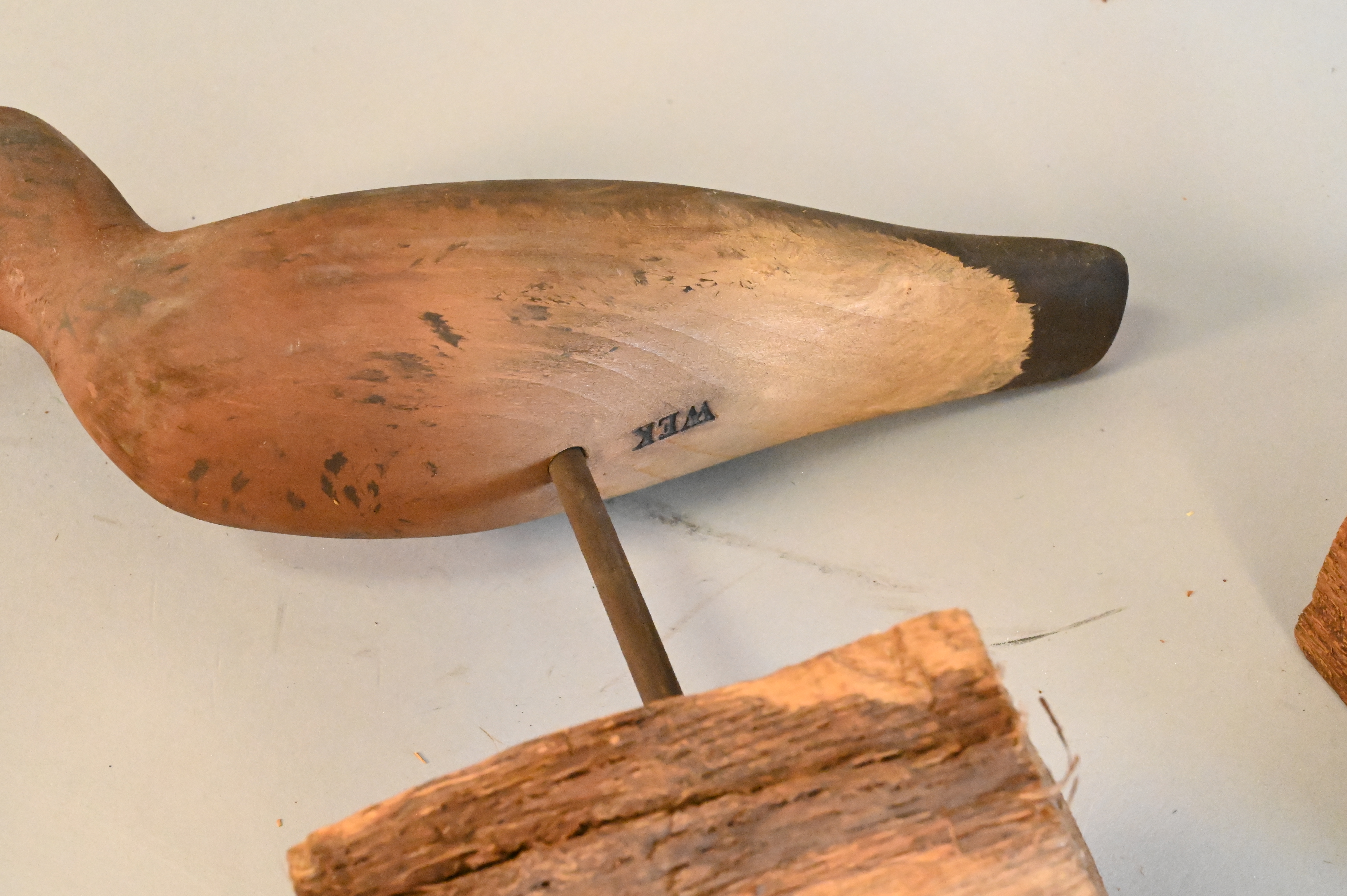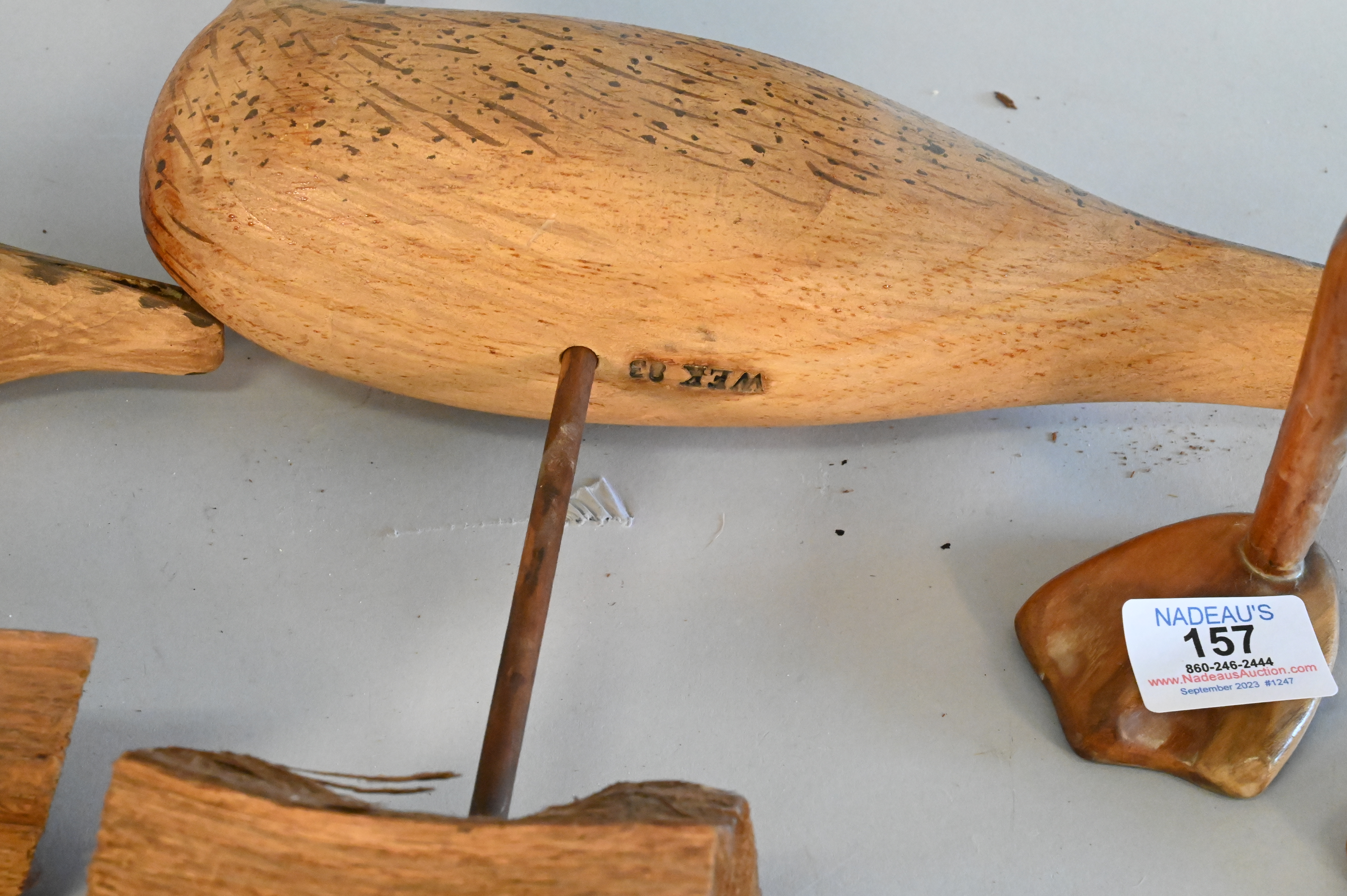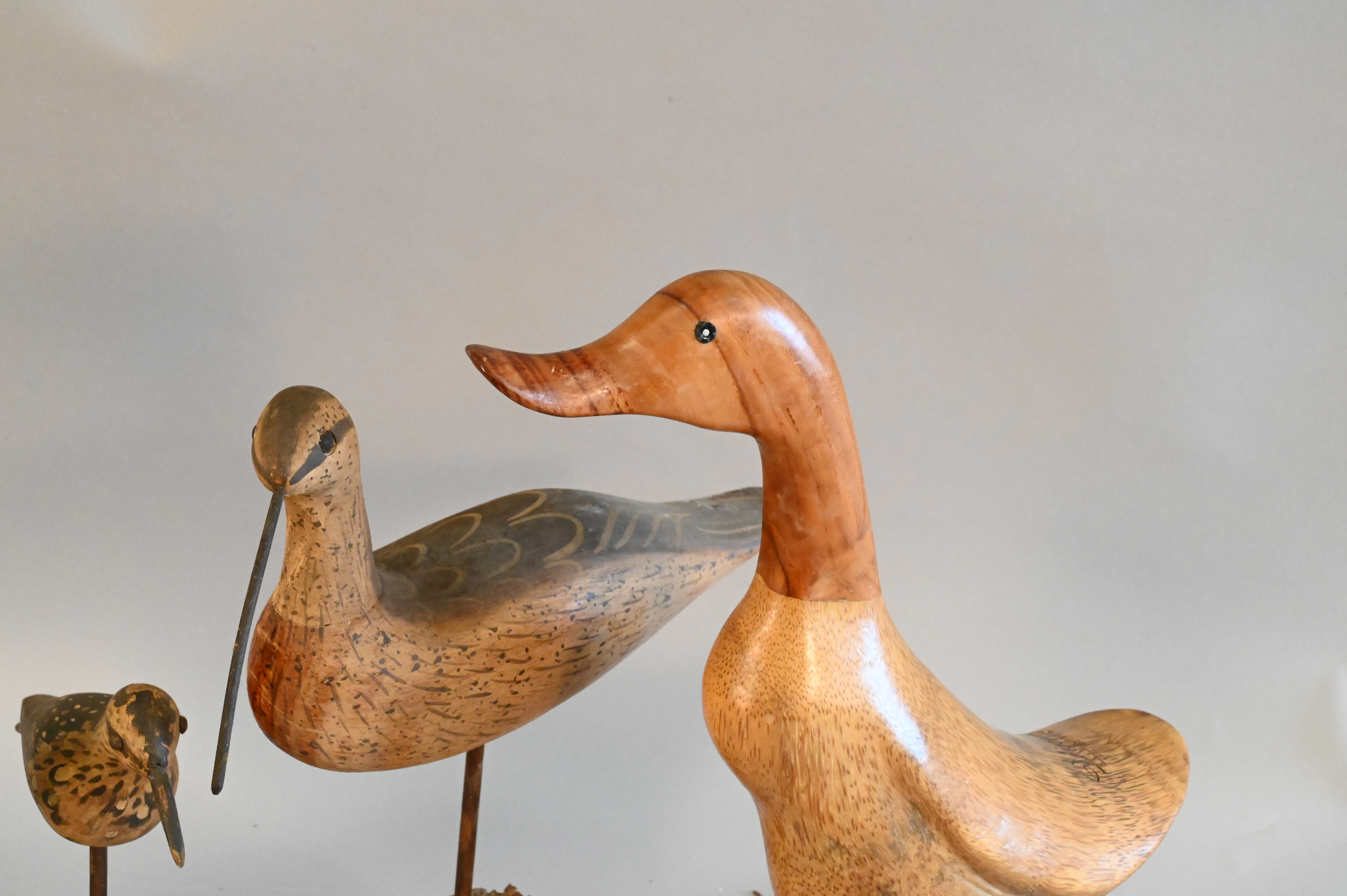 Four Birds, to include three shore bird decoys signed WEK, height 13 inches.