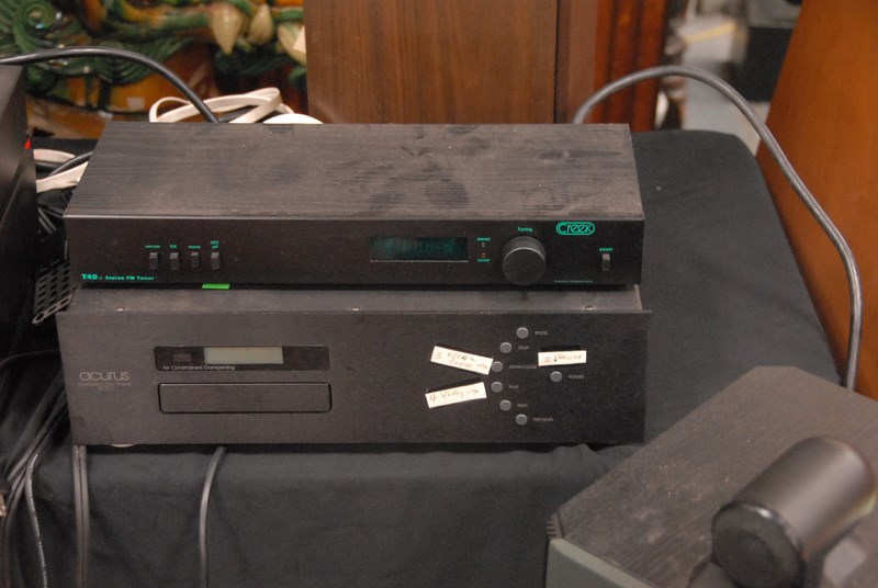 Four piece stereo lot to include Acurus A150 amplifier, Acurus RL-11 audiophile preamp, Acurus ACD11 disc player, Creek T40 FM tuner and six spears to include B&W Matrix 804, Marantz HD440, and Visonik David 803.