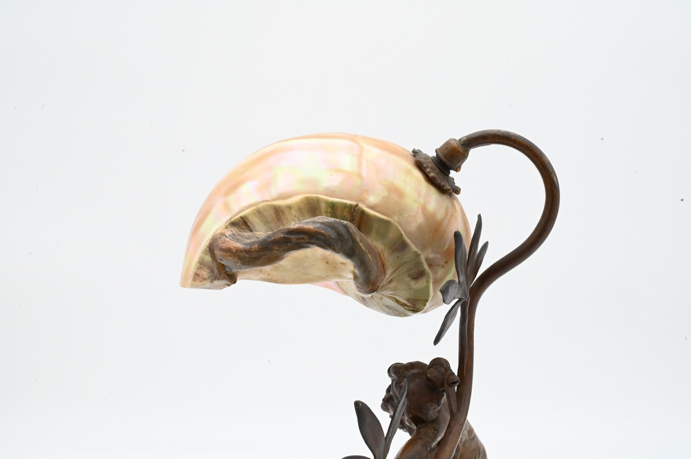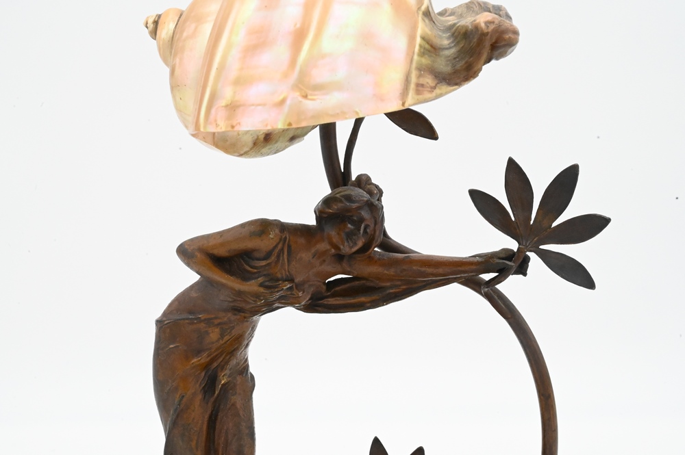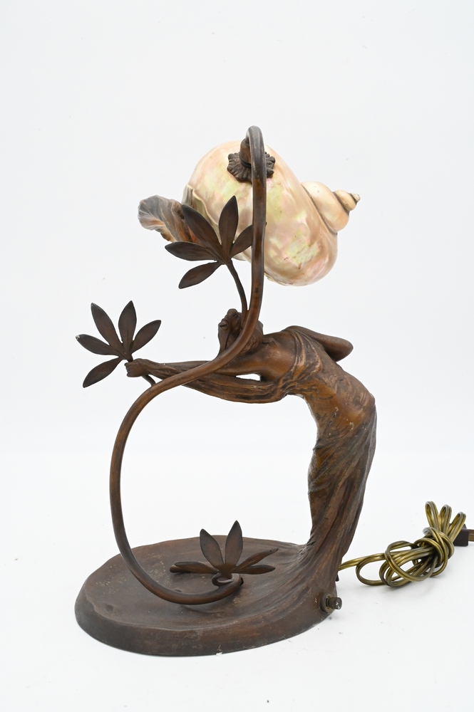 French Art Nouveau Figural Shell Shade Lamp, height 13 1/2 inches.