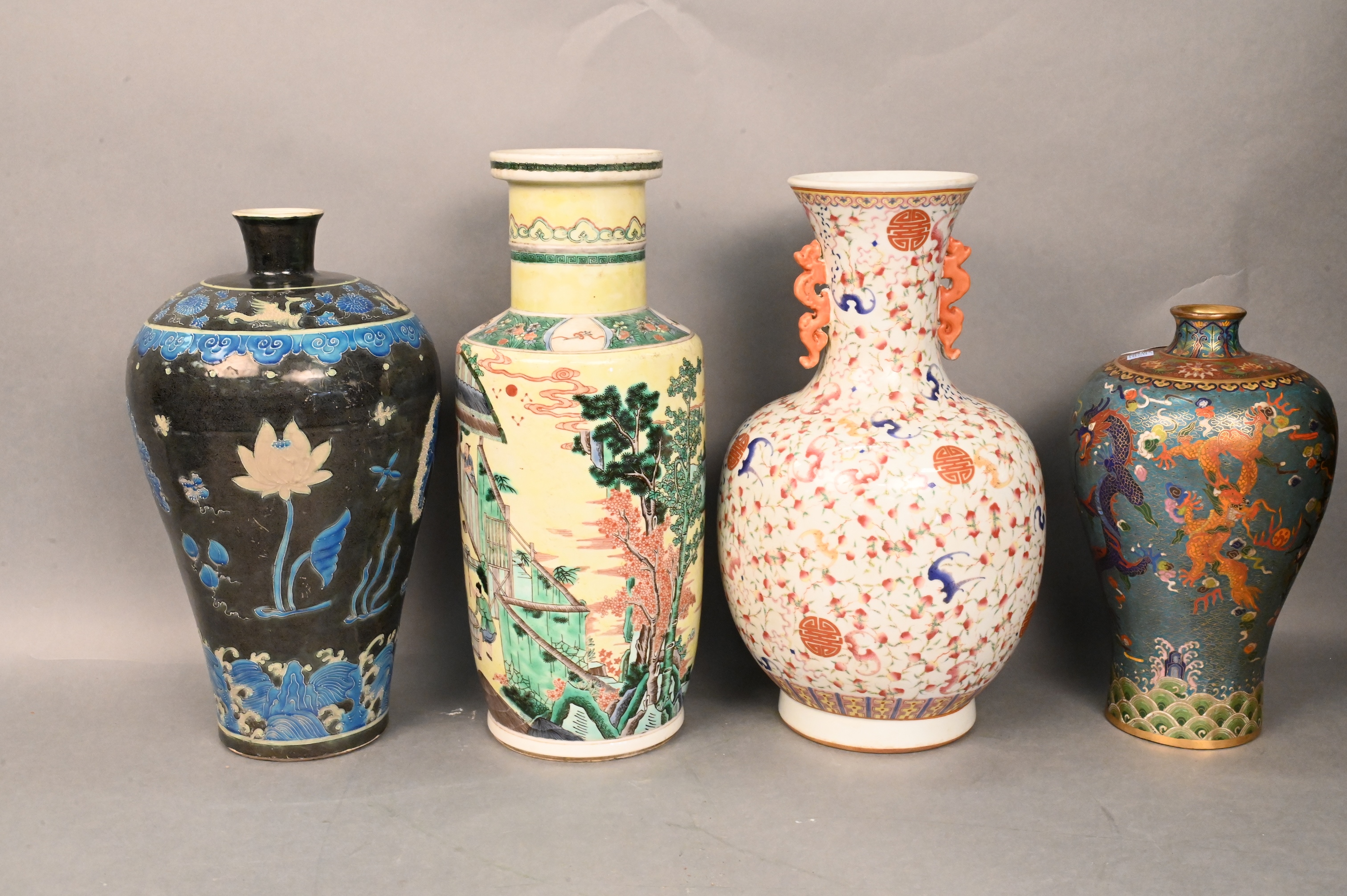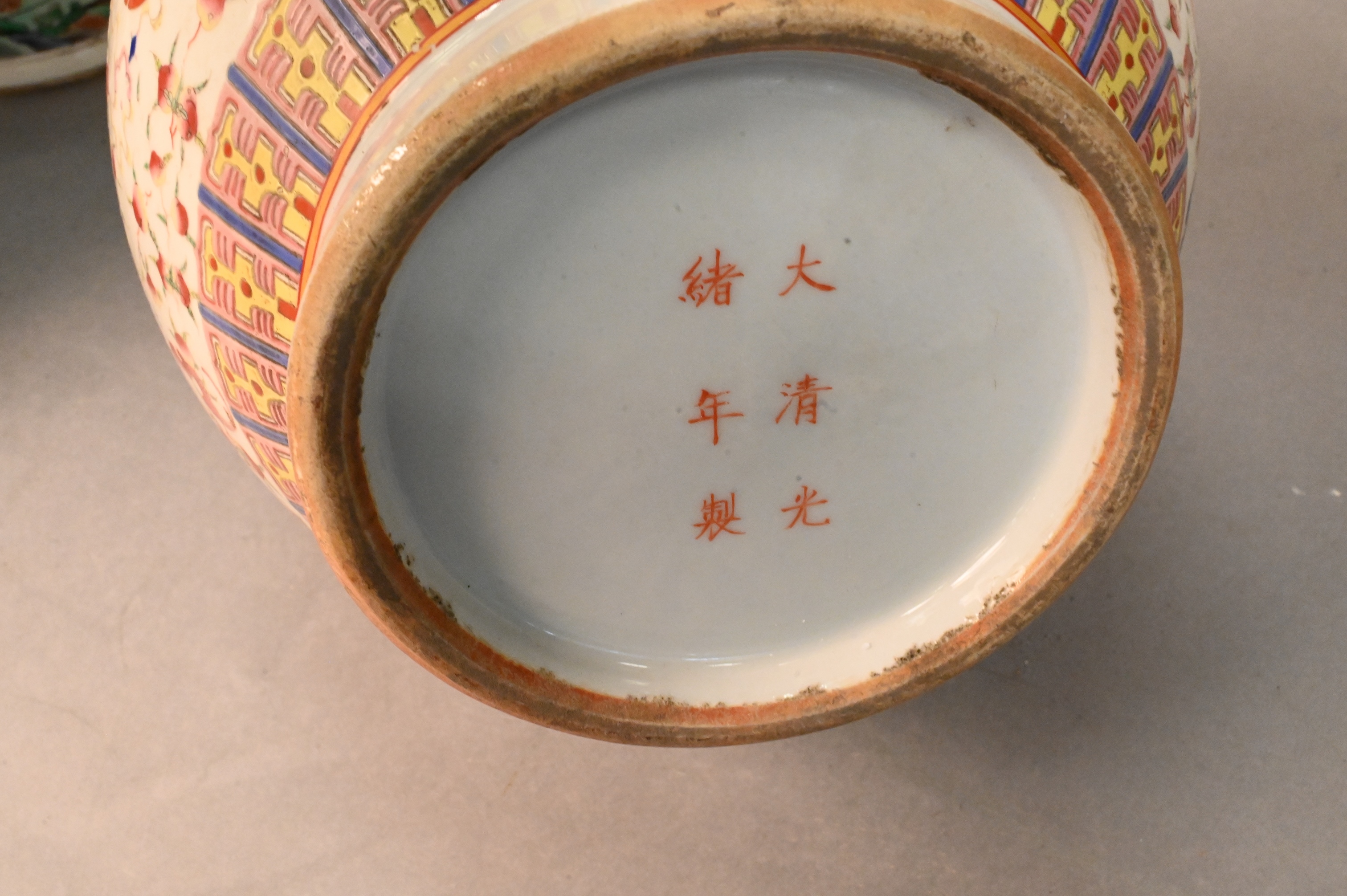 to include double dragon handle vase having porch and bat motif, Fahua style