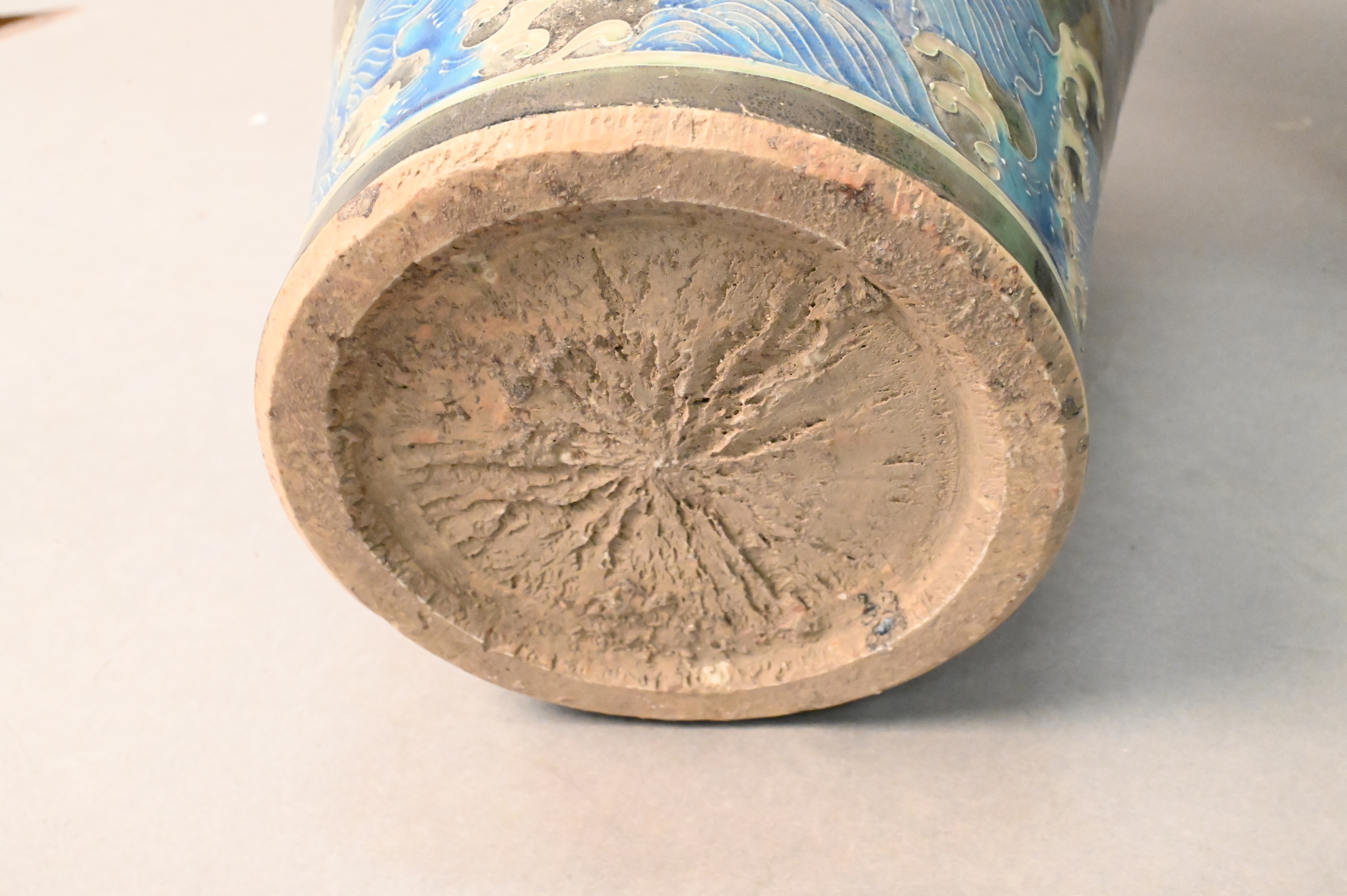 Meiping vase blue and black ground having lotus and phoenix motif, famille verte