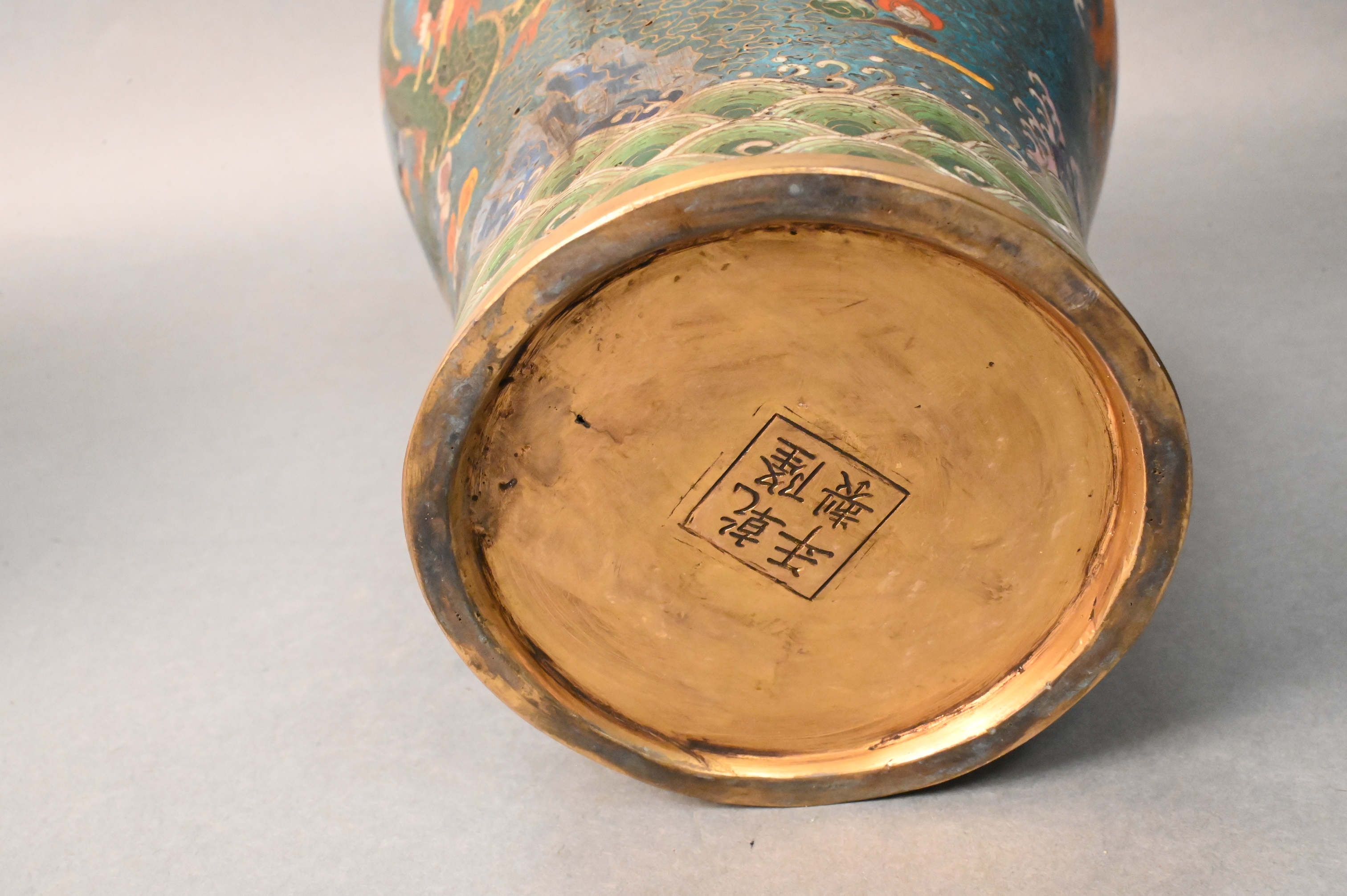 baluster vase Yongzheng style, cloisonne Meiping vase having five claw dragon