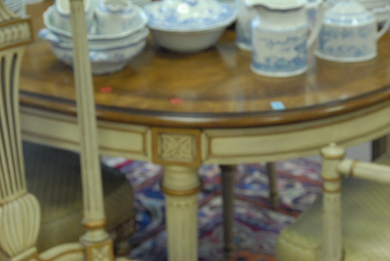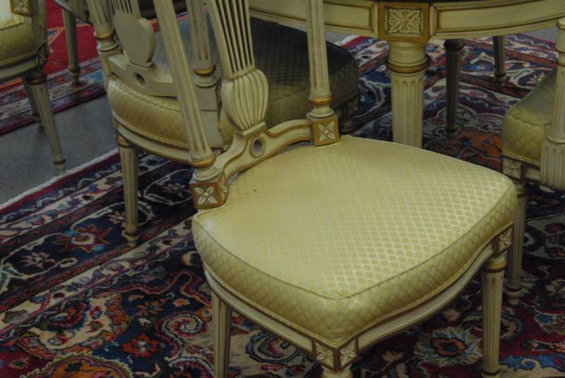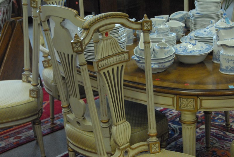 Karges Furniture Company dining set with oval table and 6 chairs.