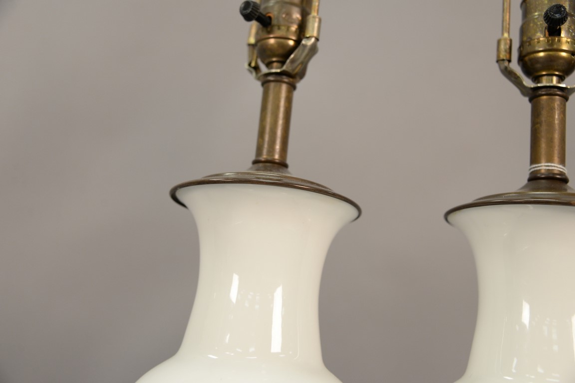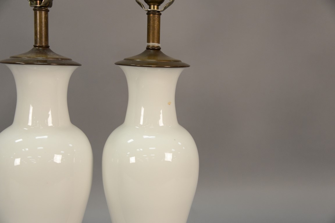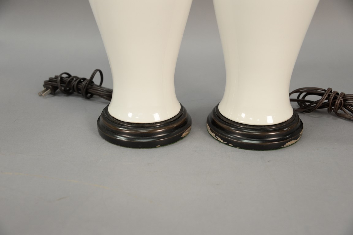 Pair of blanc de chine porcelain vases made into table lamps. vase ht. 14 1/2in.
