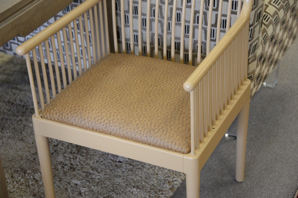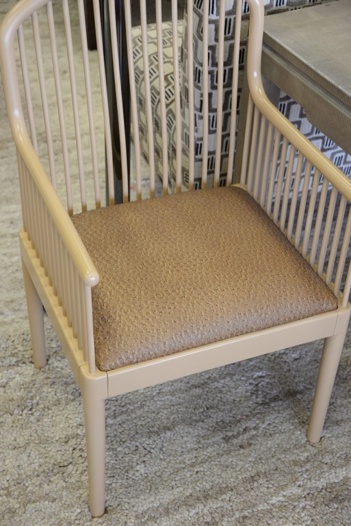Lot 157: Pair of Davis Allen armchairs by Stendig made in Italy, refurbished, tan color and faux ostrich upholstery.