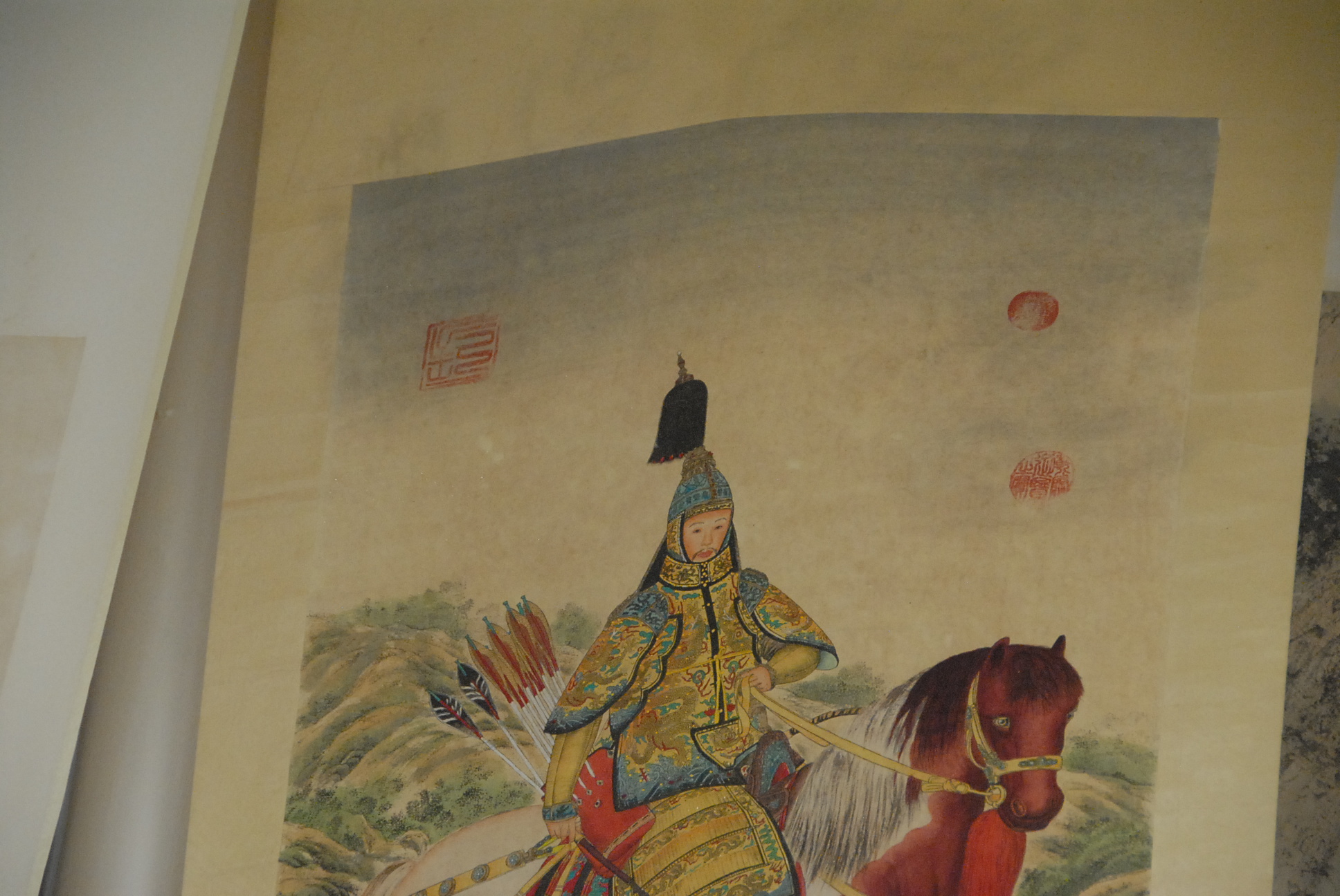 Qianlong scroll of warrior riding horse, 33 x 21.