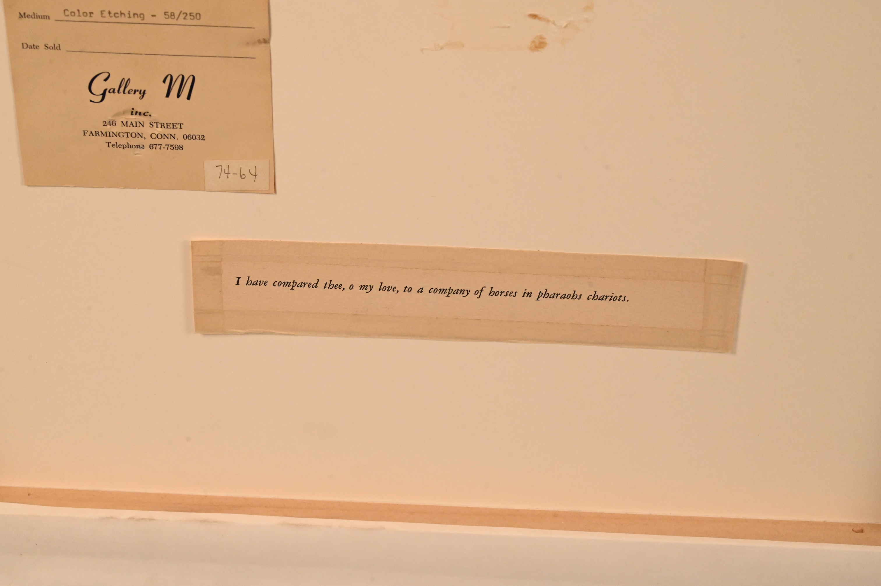 “I Have Compared Thee, O My Love, to a Company of Horses in Pharaoh’s Chariots”,1971