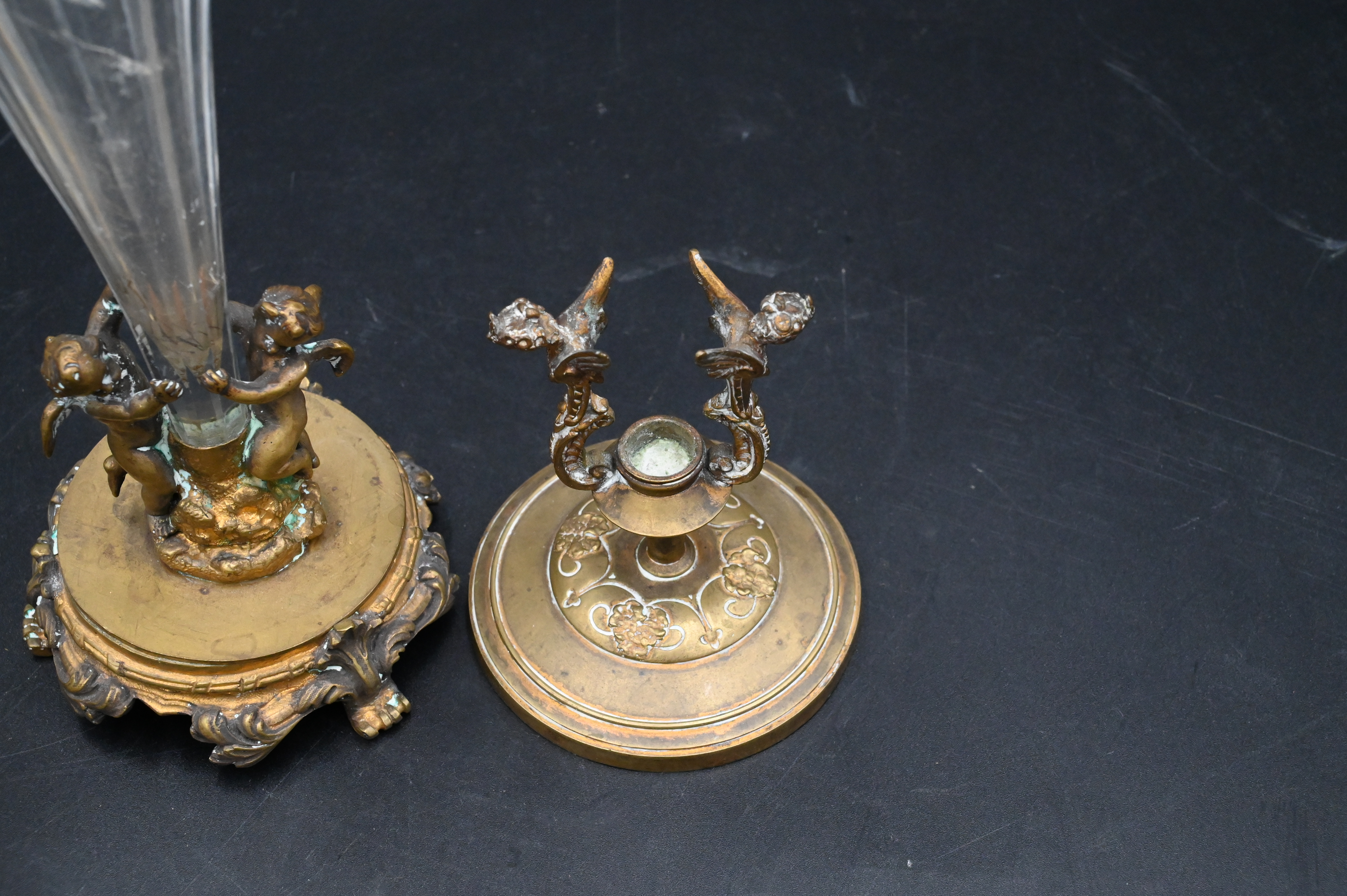 vase having putti figures height 10 1/2 inches, pair of vases height 6 1/4 inches