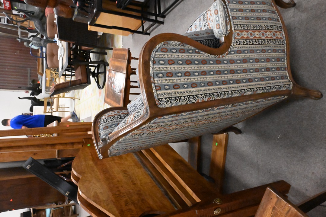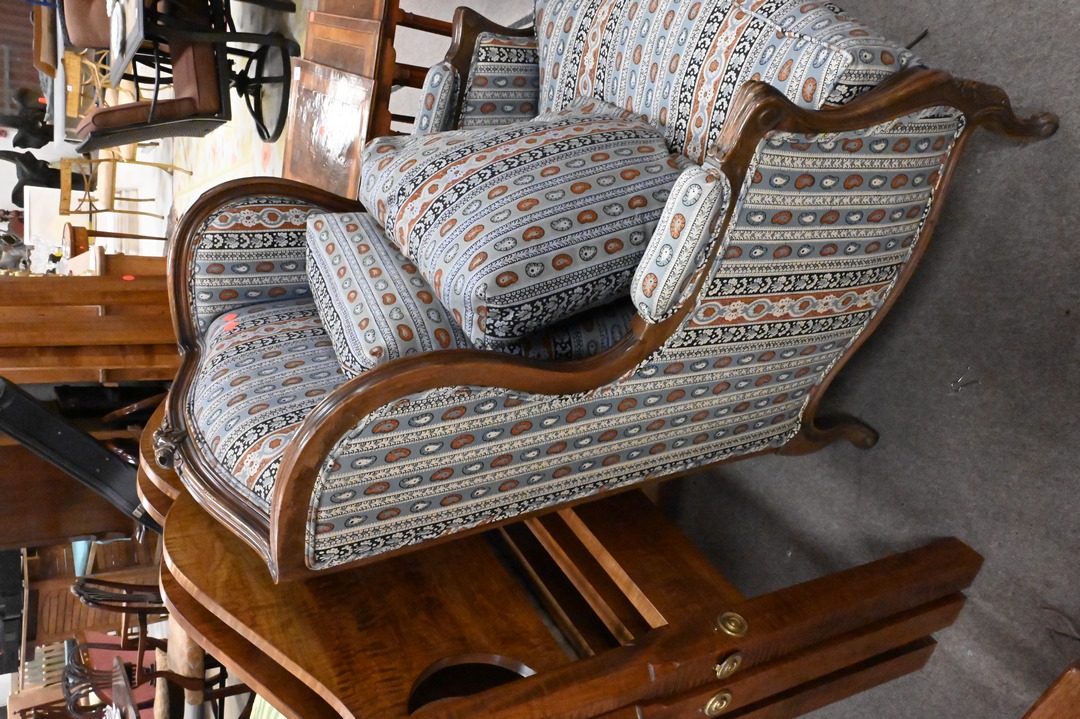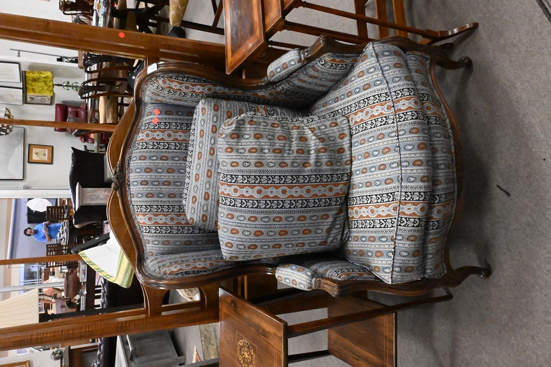 Trouvailles, Inc. Louis XV Style Upholstered Wing Chair, height 43 inches, width 30 inches.