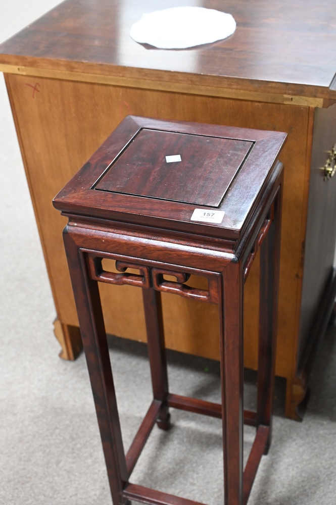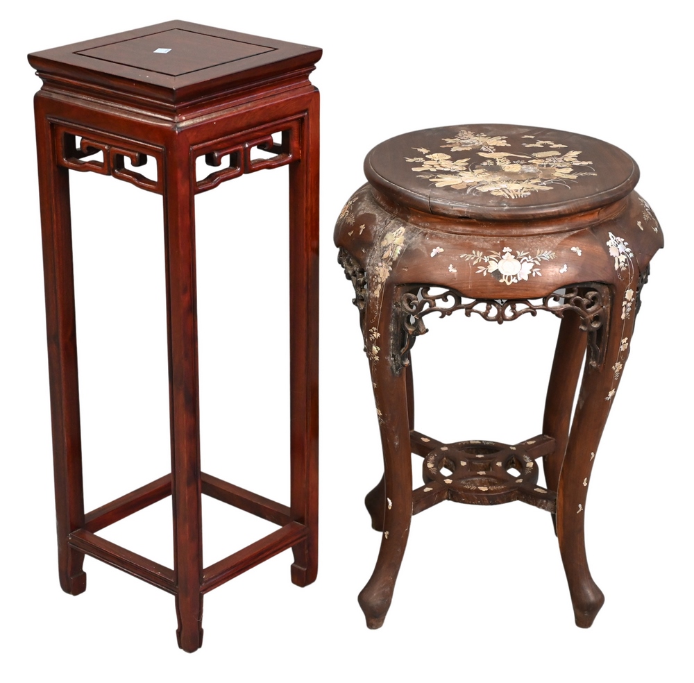 Lot 157: Two Piece Chinese Lot, to include a mother of pearl inlaid stand, height 23 inches; along with a tall hardwood stand, height 29 inches.