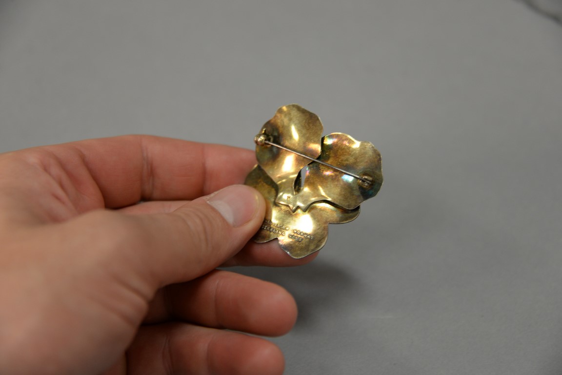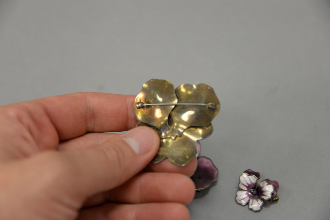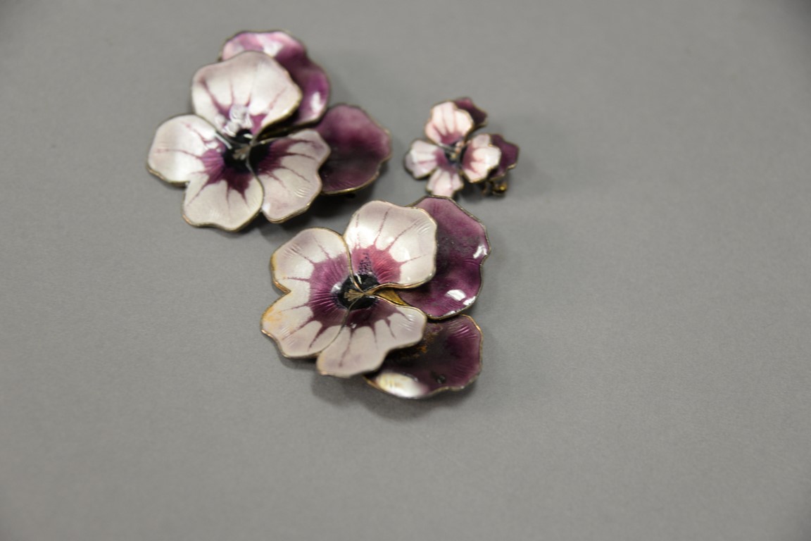 Lot 157D: Three piece enameled and sterling three pin set signed David Anderson Norway, 2 @ 1 7/8 and 1 @ 1.