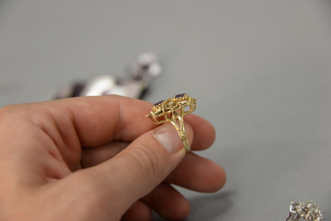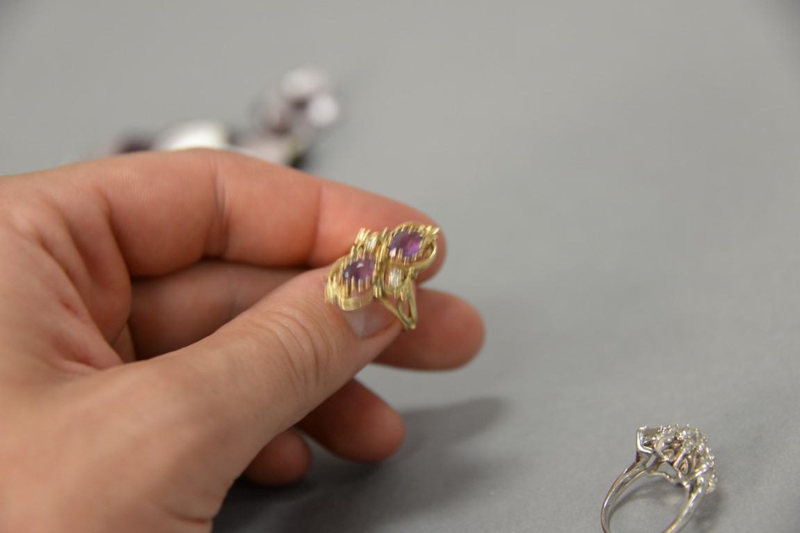 Two 14K gold cocktail rings, one set with diamonds, 11.9g.