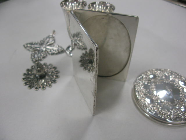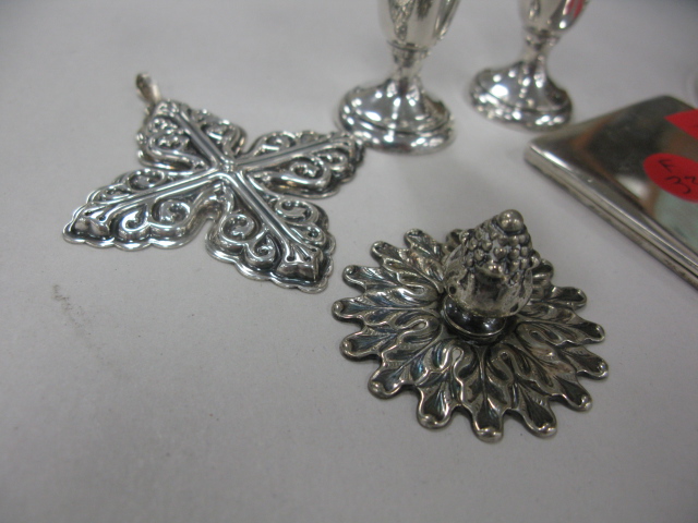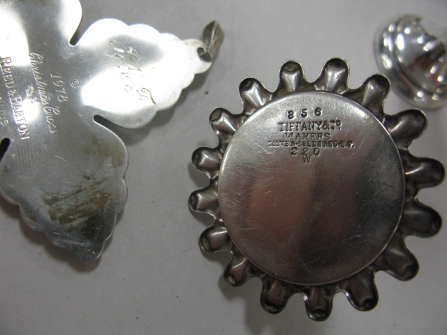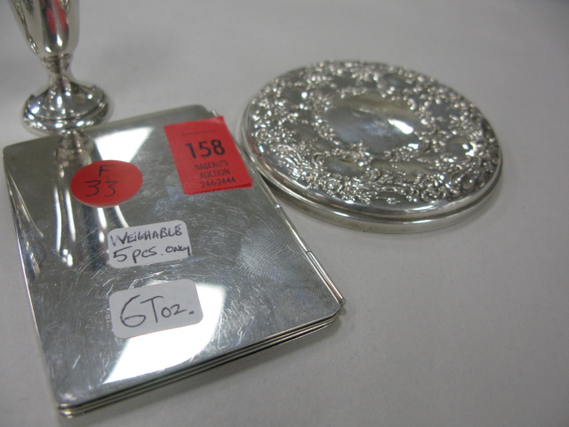 6 sterling silver pieces to include card case, mirror, Tiffany piece, two shot glasses