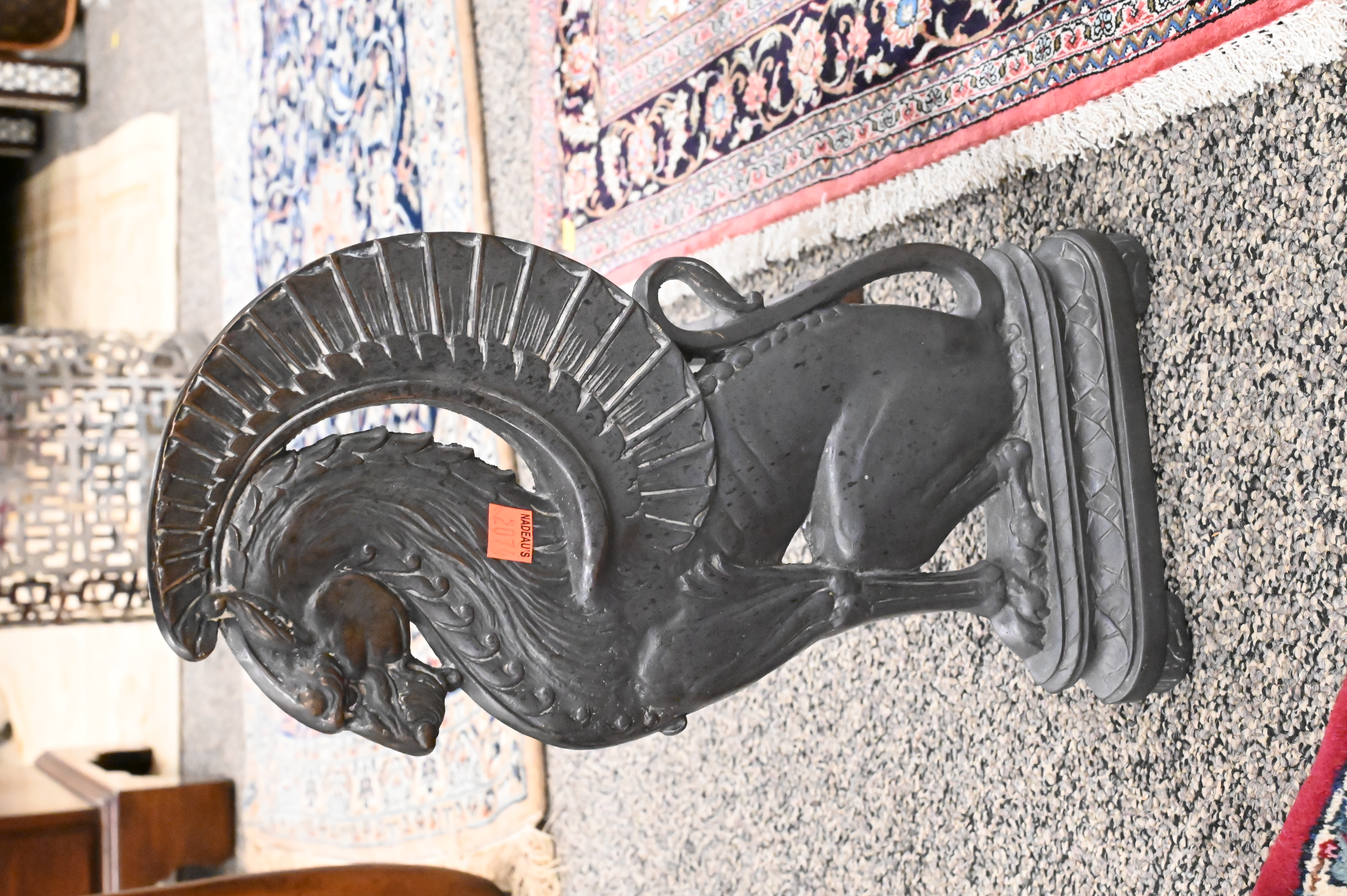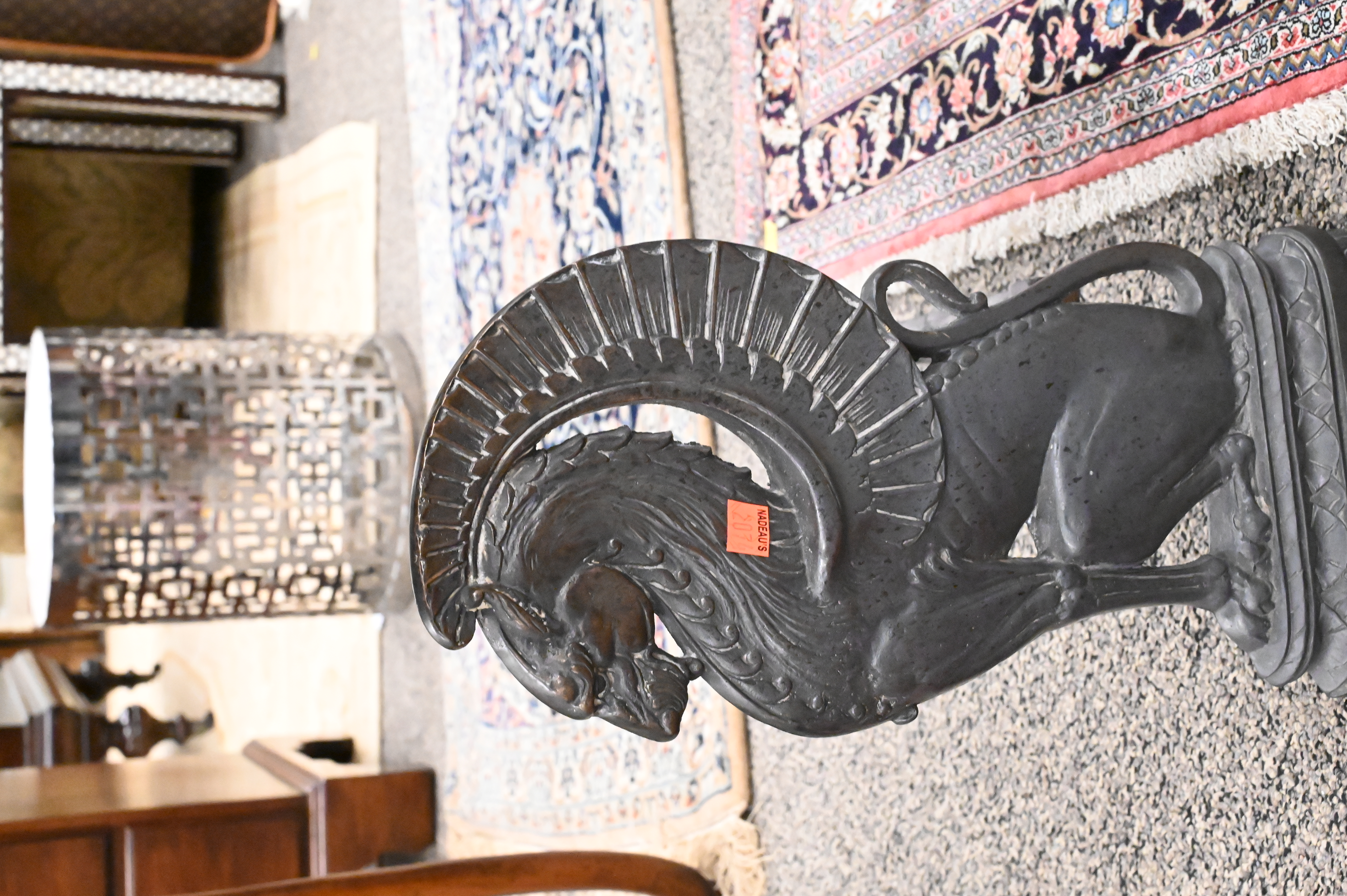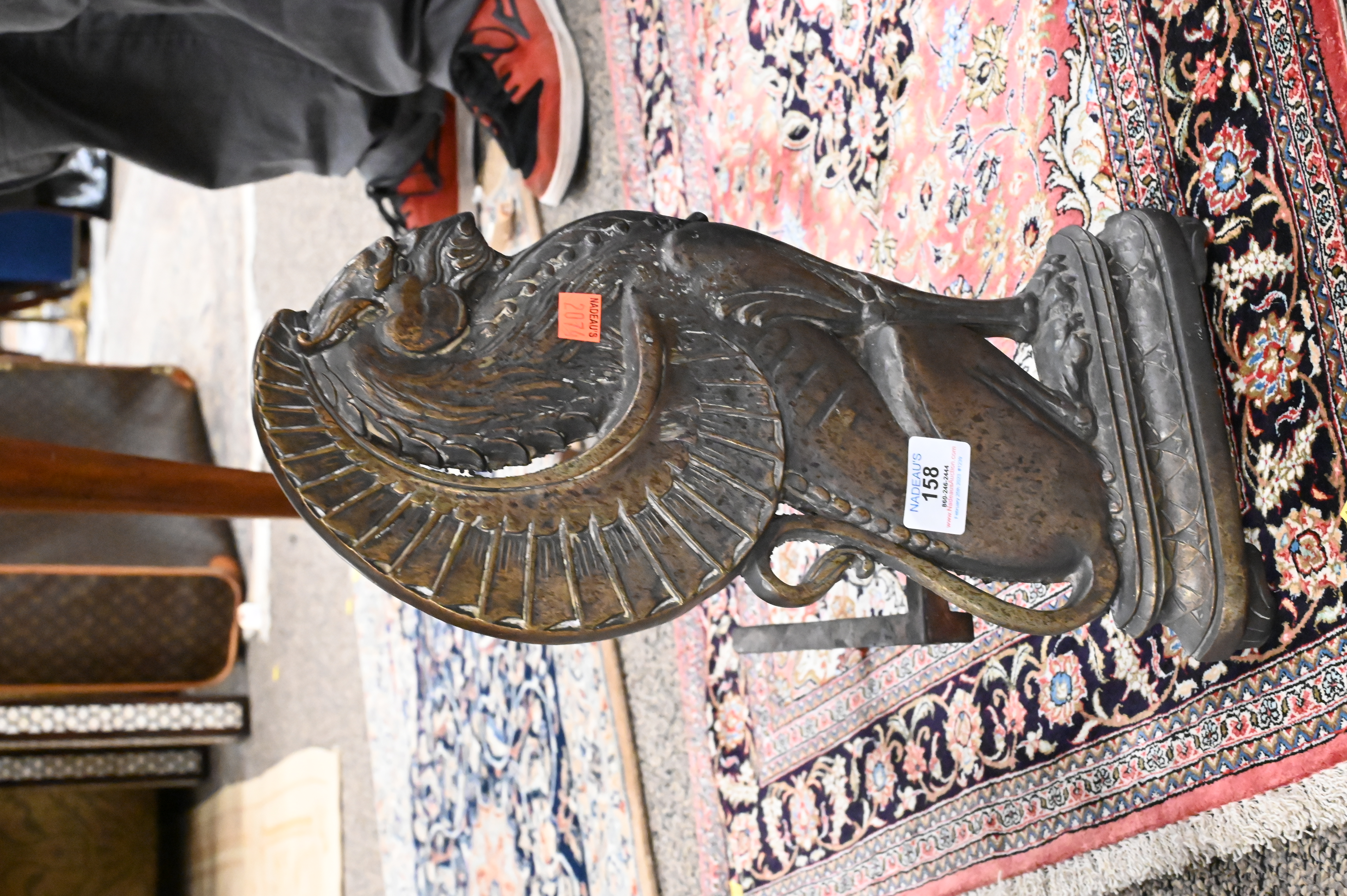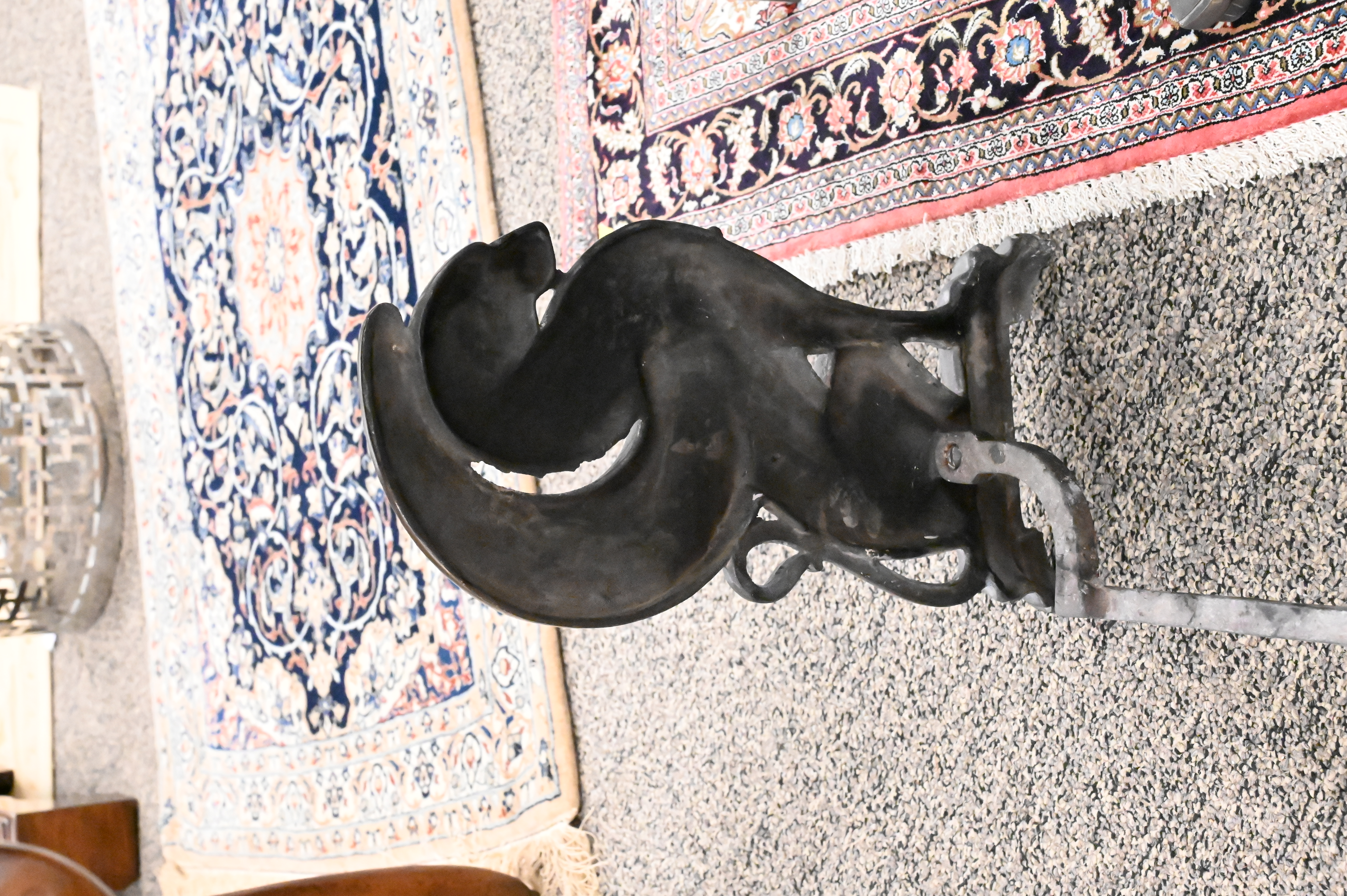 A Pair of Bronze Art Deco Griffin Form Andirons, height 16 inches.