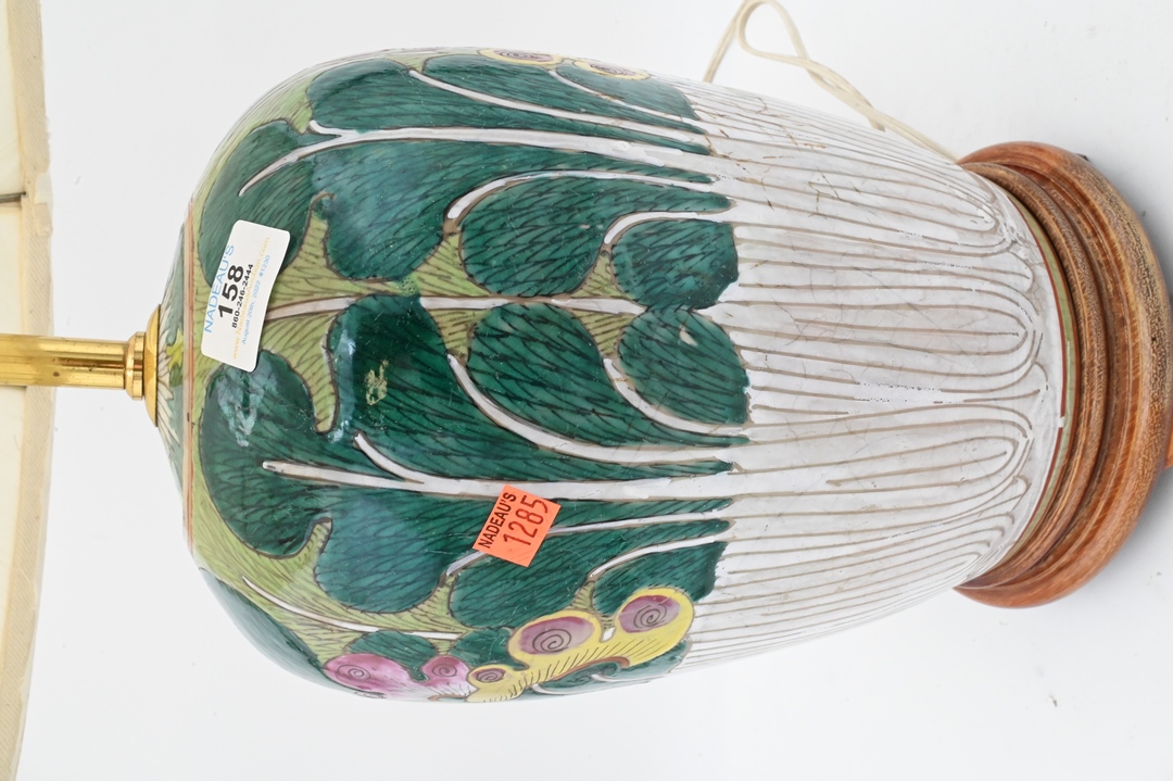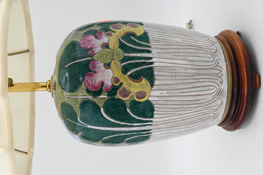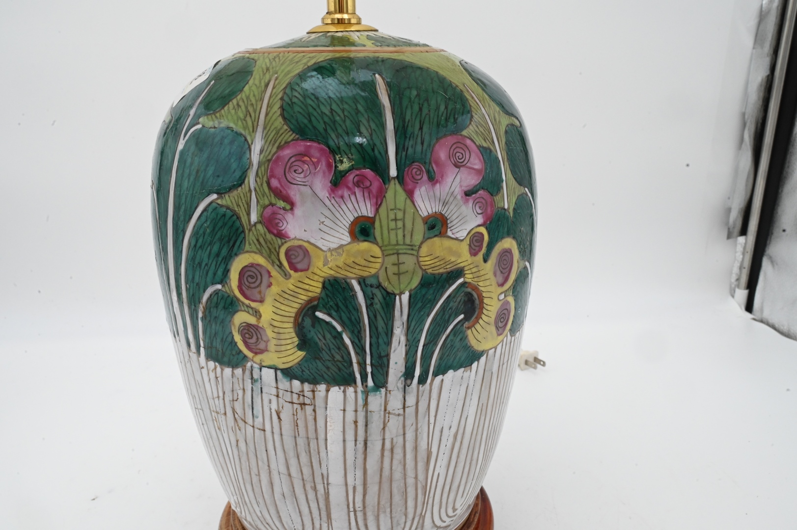 Chinese Porcelain Jar, made into a table lamp, height 22 inches.