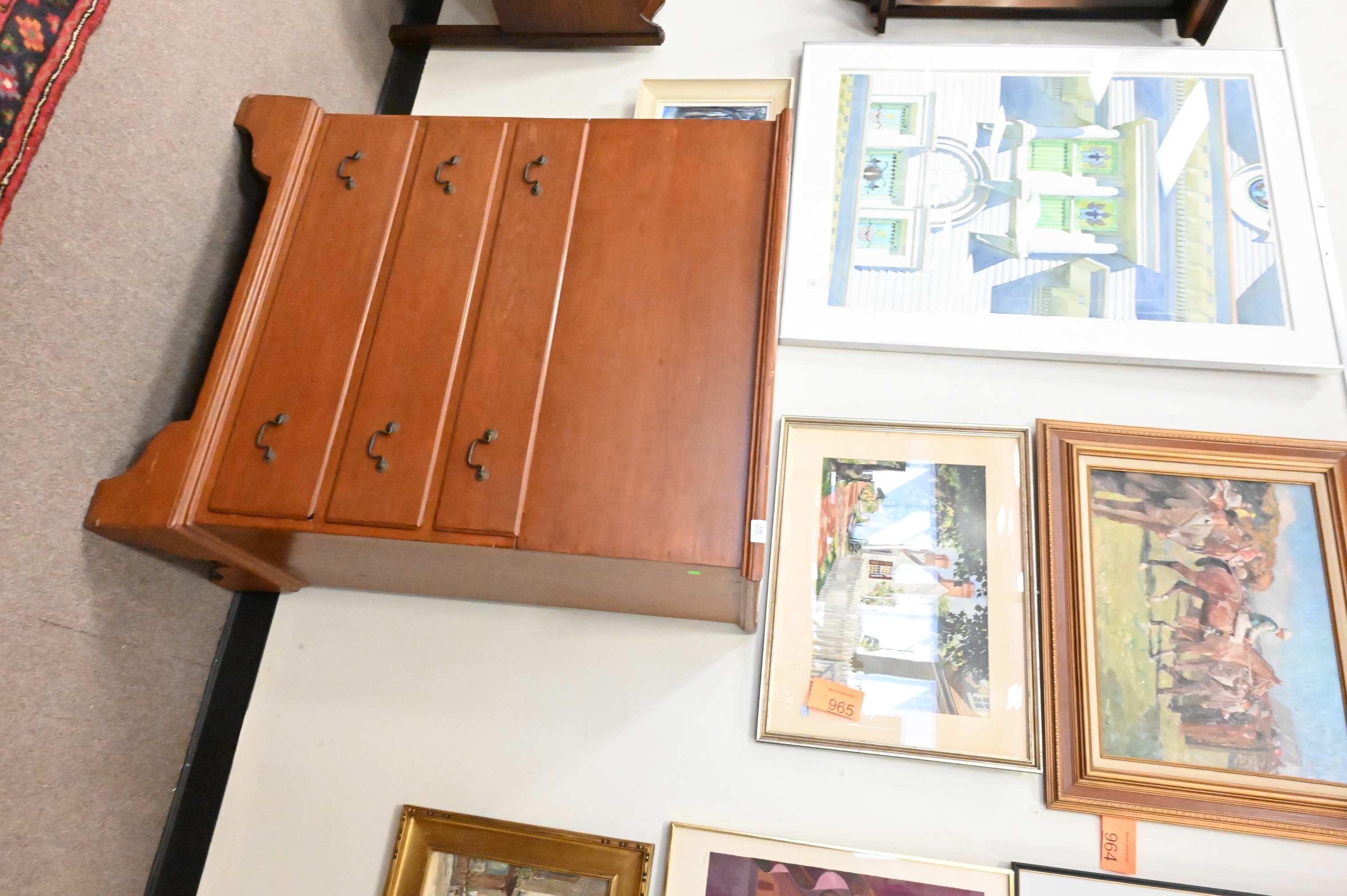 This report is provided by Nadeau’s Auction Gallery as a courtesy and reflects our opinion only. Bidders should conduct their own due diligence. The absence of a report does not imply the lot is free of issues. Assessments are based on visual inspection; unless noted, items have not been examined under UV light, movements and electrical components have not been tested, and artworks are generally not removed from frames. We are not professional conservators, and this report is not a comprehensive condition evaluation. Images provided form part of the report and should be reviewed carefully. All sales are final. For in-person inspection, please call 860-246-2444 or email info@nadeausauction.com.
