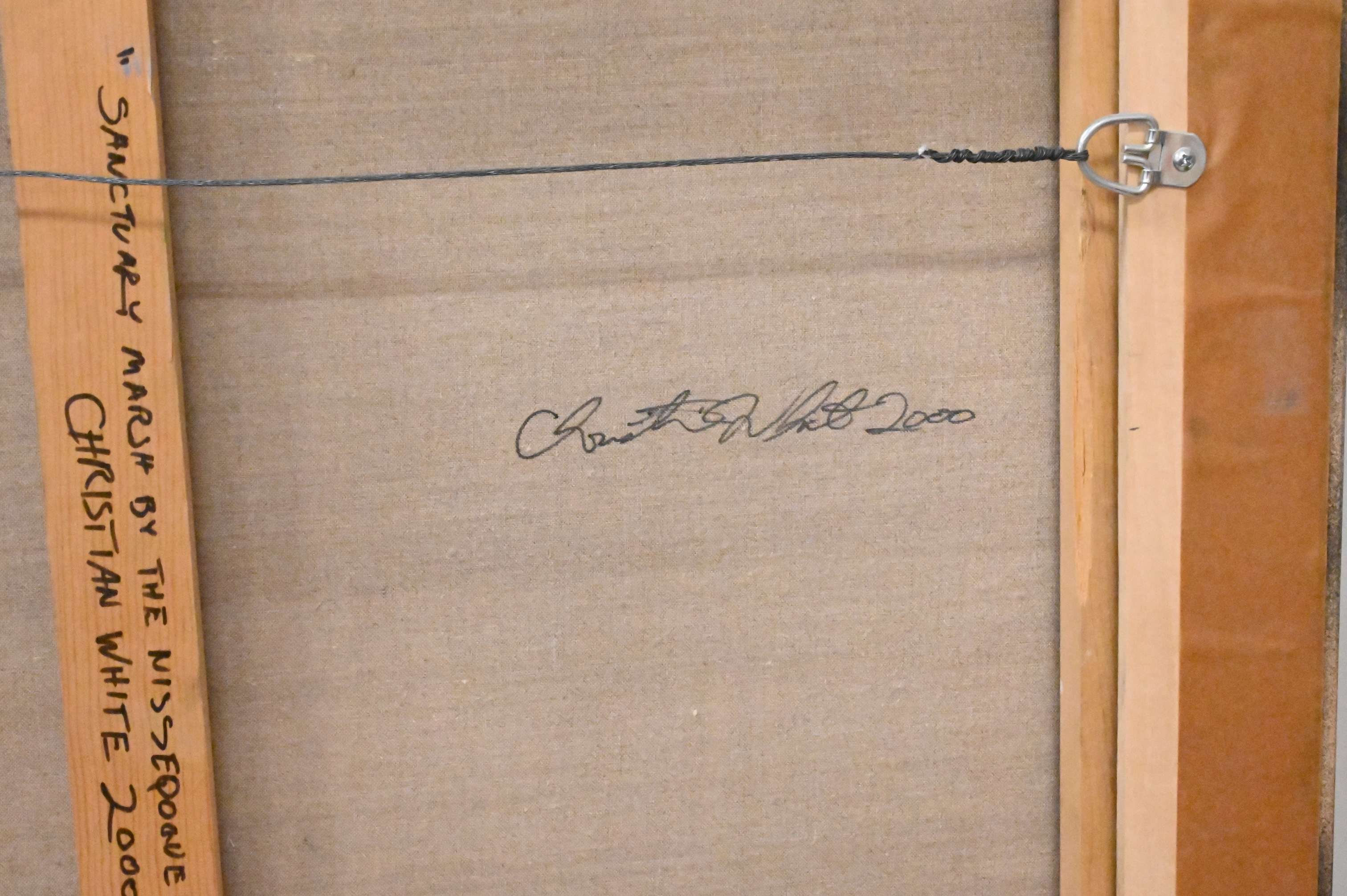 Christian White (American b. 1953) “Sanctuary Marsh by the Missepaque” oil on canvas, 2000 signed on reverse twice “Christian White” 20″ x 20″
