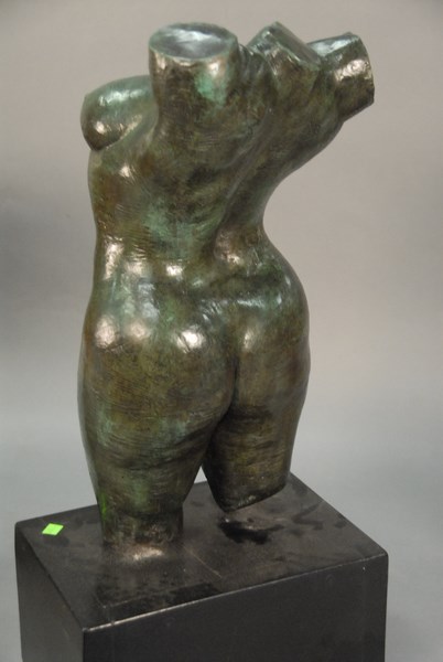 Dan Stix Bronze Sculpture Nude Female Torso on wood base signed Stix 1971 total ht. 29in.