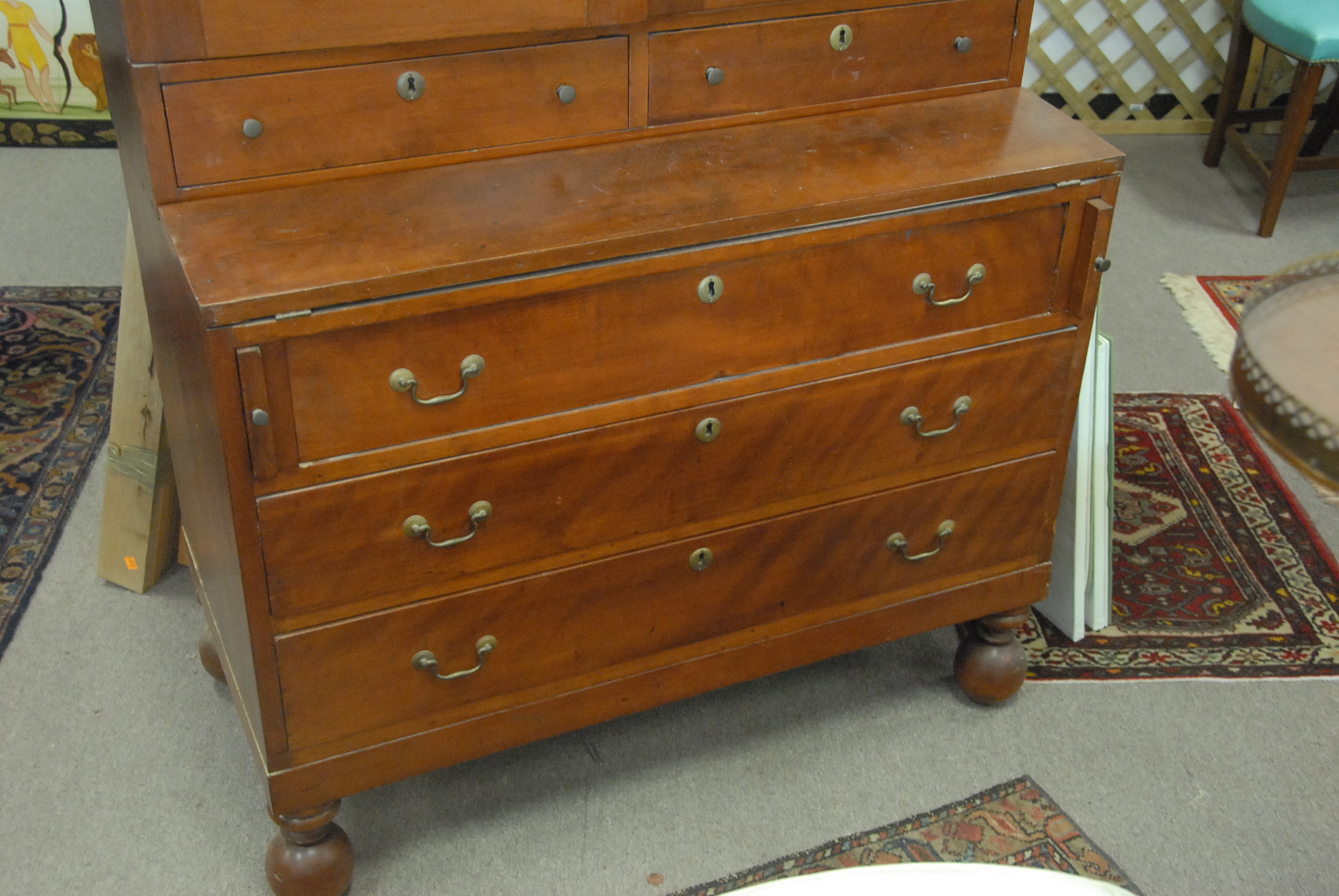Empire mahogany secretary desk with bookcase top, circa 1840, ht. 76.
