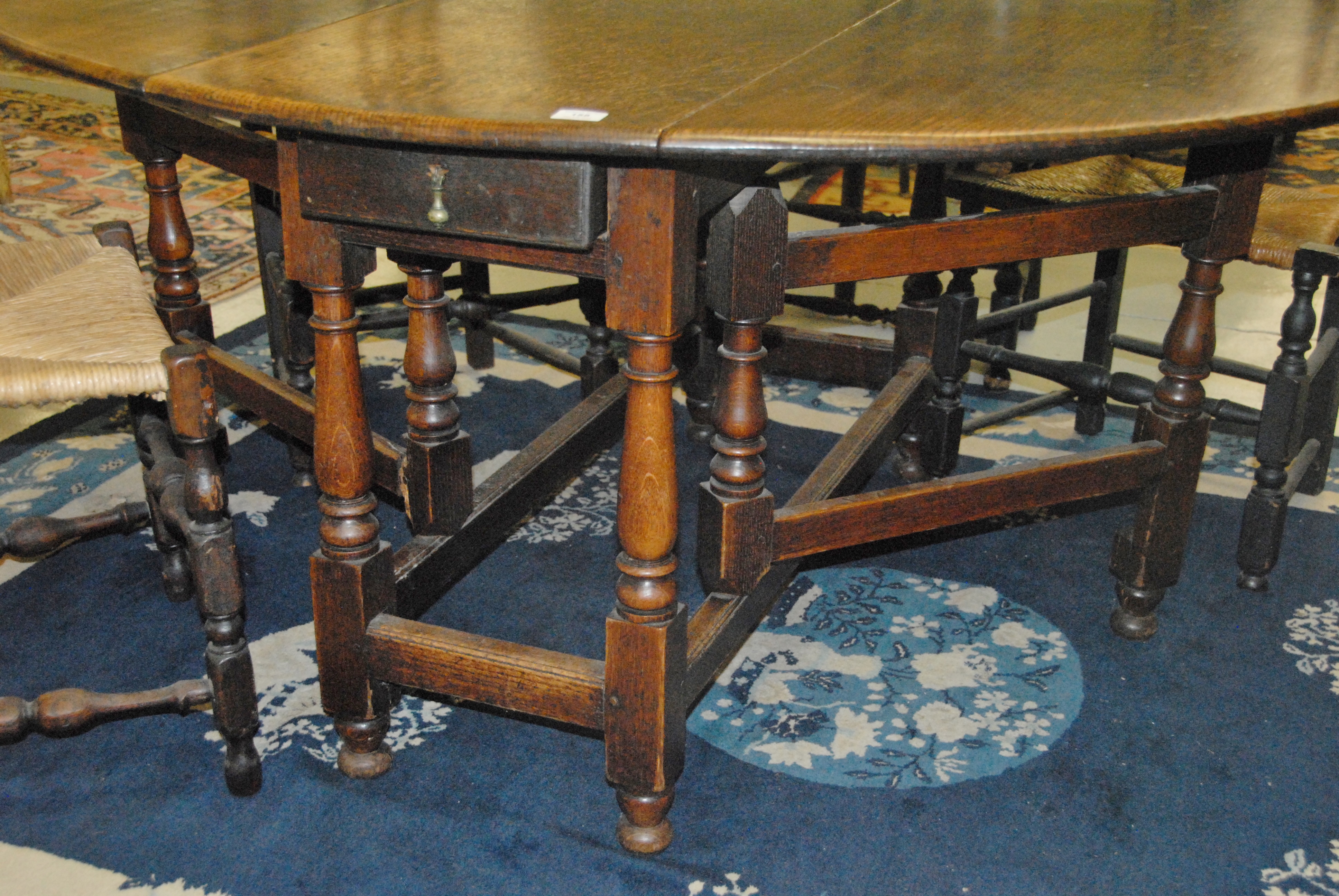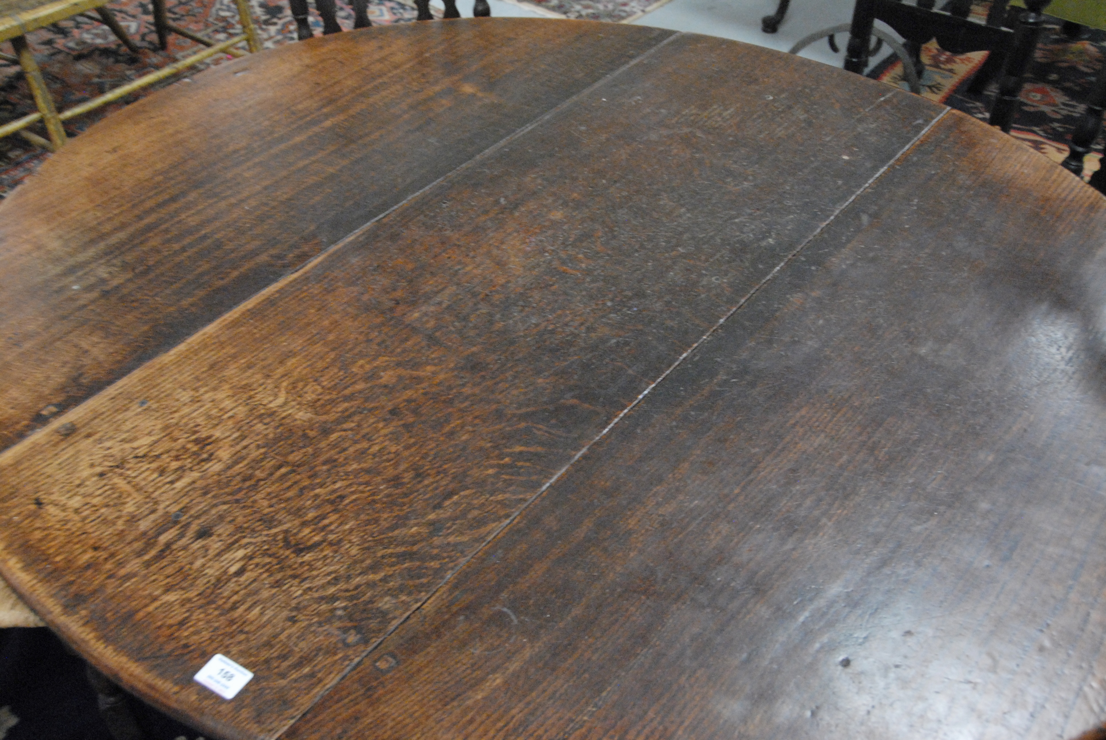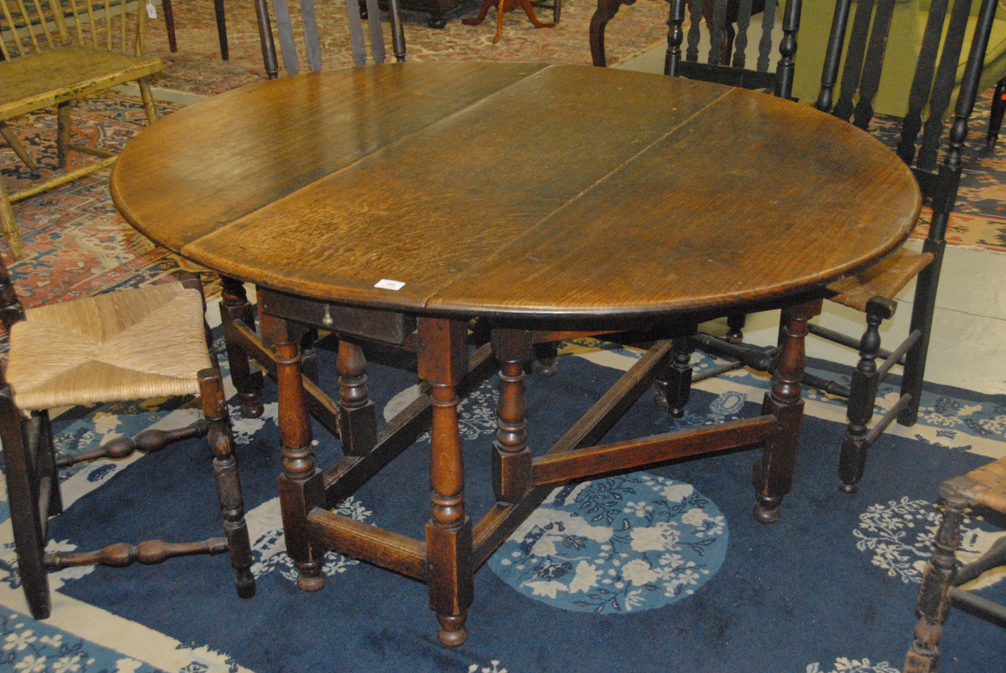 George II oak gateleg table with oval drop leaves on turned legs. size when open 51 x 58