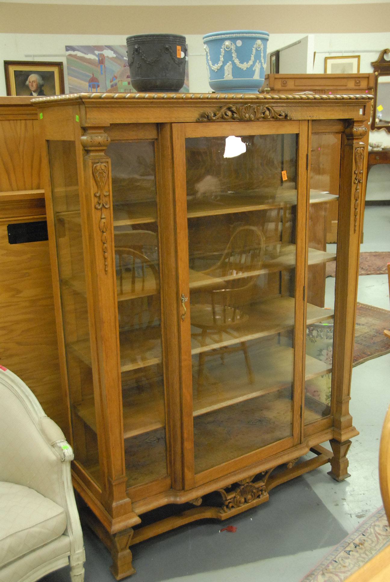 Oak Victorian china cabinet, ht. 65in. wd. 45in. dp. 16in.