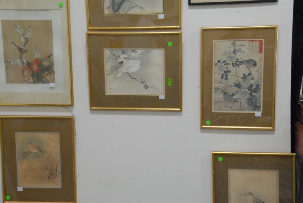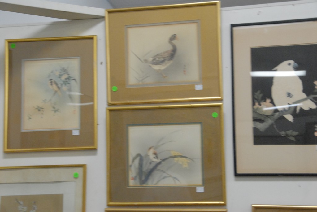 Ten piece lot of mostly Japanese woodblock prints with birds.