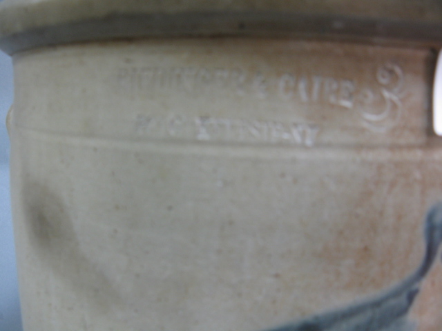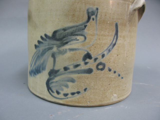 Three gallon Stoneware Crock with cobalt blue, bird on branch, marked Reidenger & Caire, N.Y.
