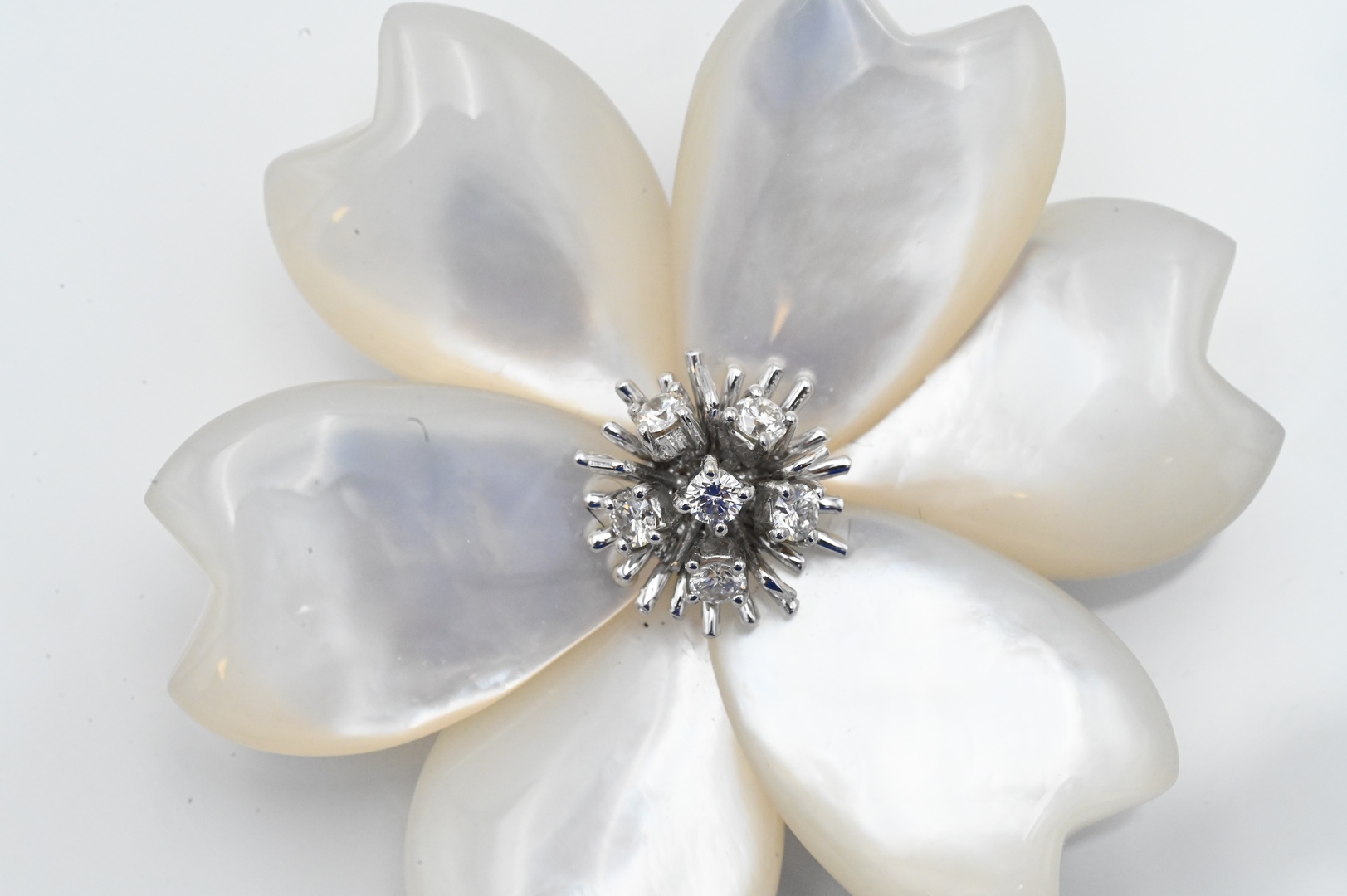 18 Karat White Gold Mounted Floral Brooch