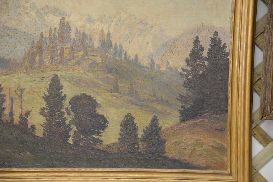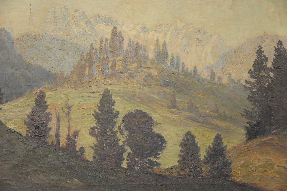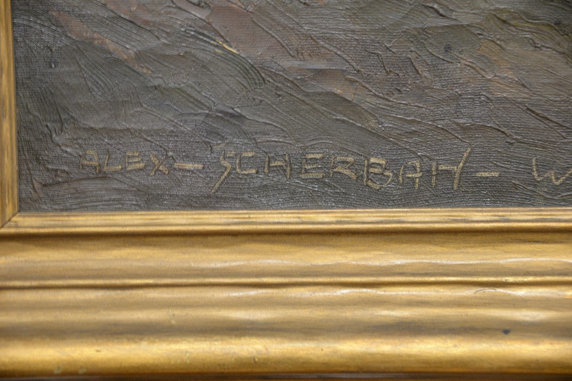 Lot 159: Alexander Scherban 1886-1964 oil on canvas fall landscape signed lower left: Alex Scherban Wien 1920, small tear top left and righ…